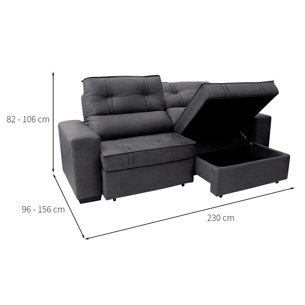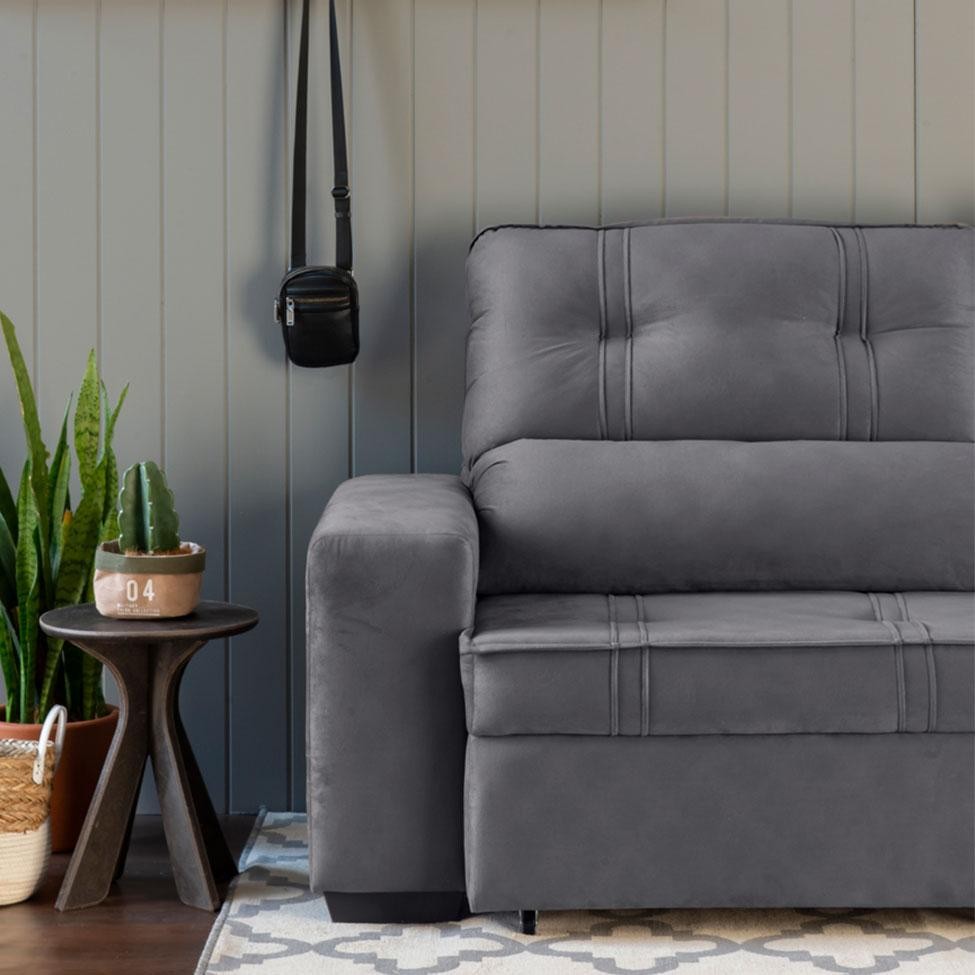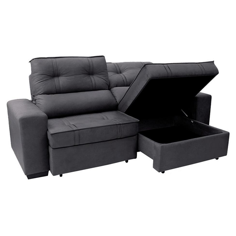 Sofá 3 Lugares Retrátil e Reclinável com Baú Lottus Suede Grafite