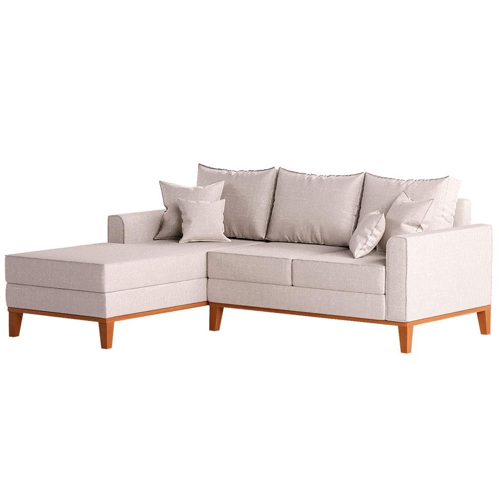 Sofá 3 Lugares Beny Com Chaise Esquerdo Linho Cru