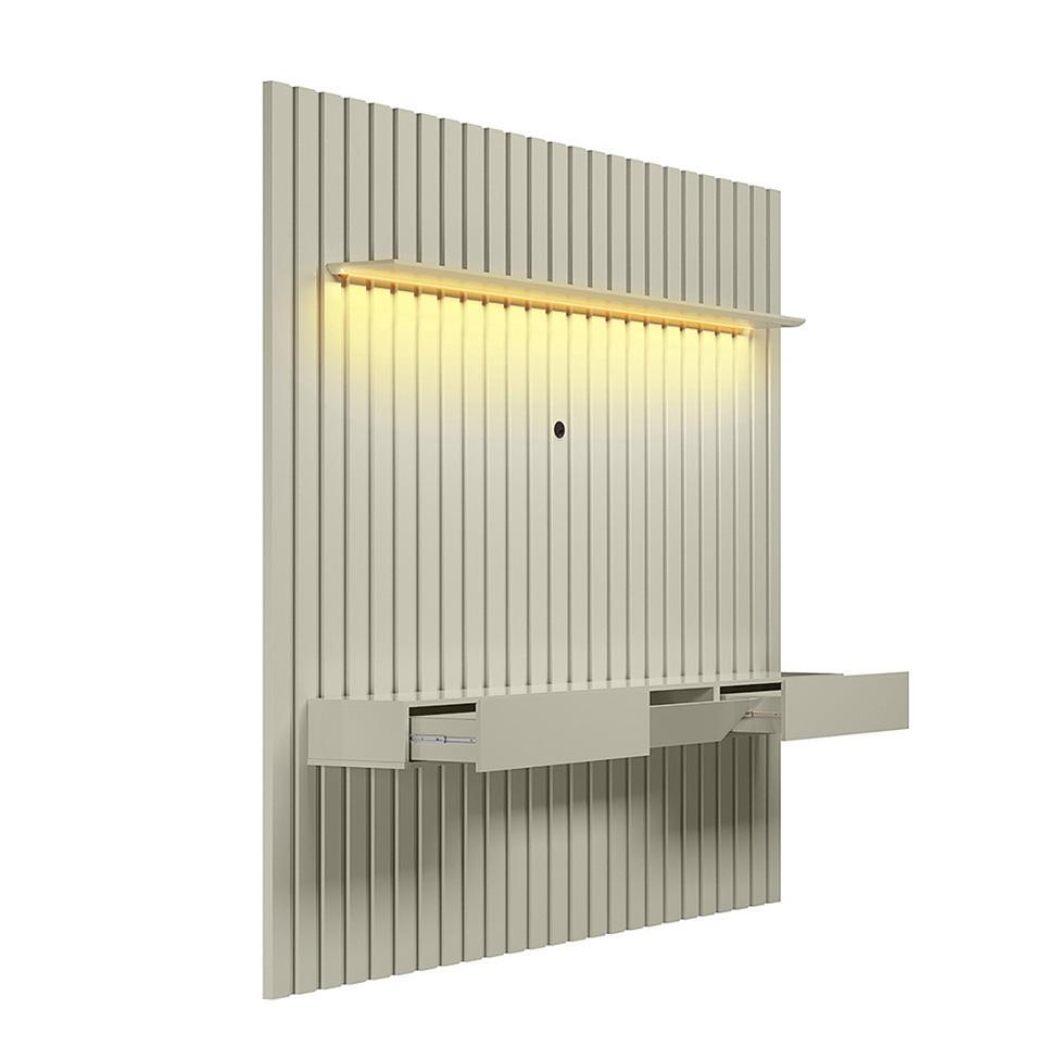 Painel Ripado com Rack Suspenso até 70 Polegadas Tulum com LED 1 PT 2 GV Off White Alt 242 Larg 222 cm