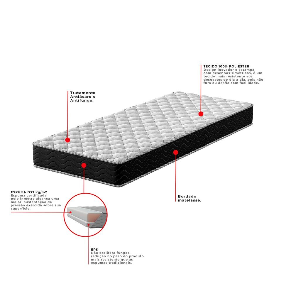 Colchão Solteiro Howie Misto D33 (17x78x188) Preto e Branco