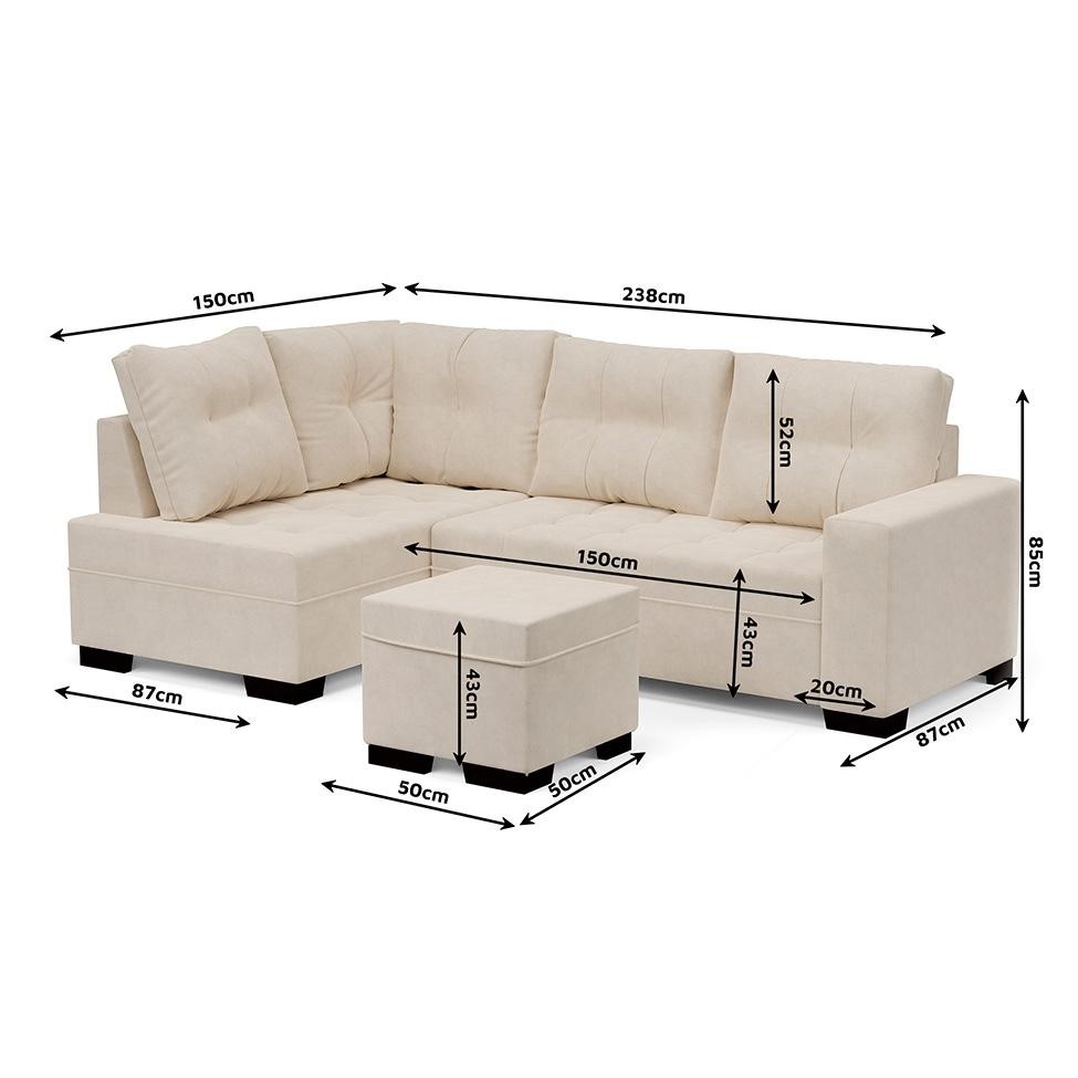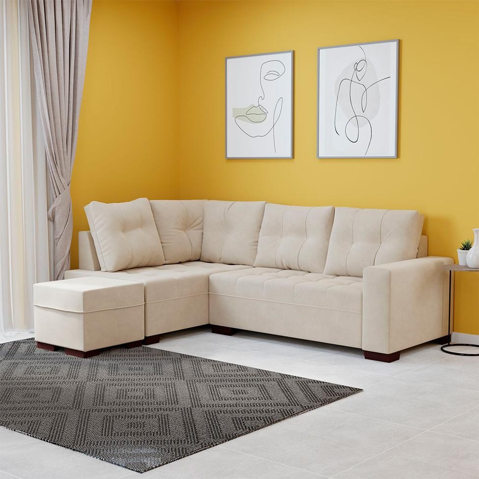 Sofá de Canto 6 Lugares Gávea Suede Bege