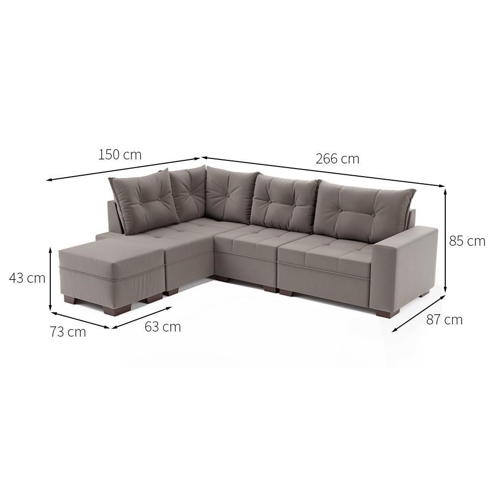 Sofá de Canto 7 Lugares Glória Suede Cinza