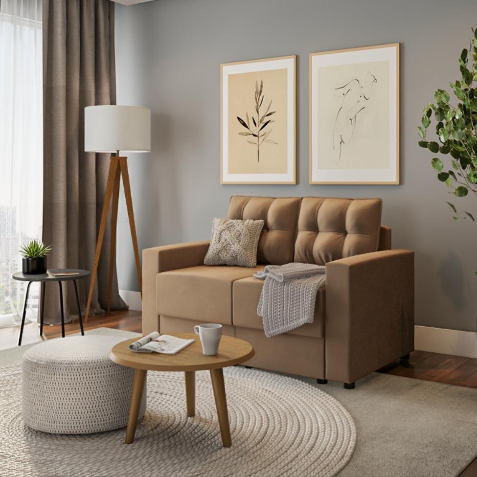 Sofá 2 Lugares Retrátil Lubeck Suede Bege 140 cm