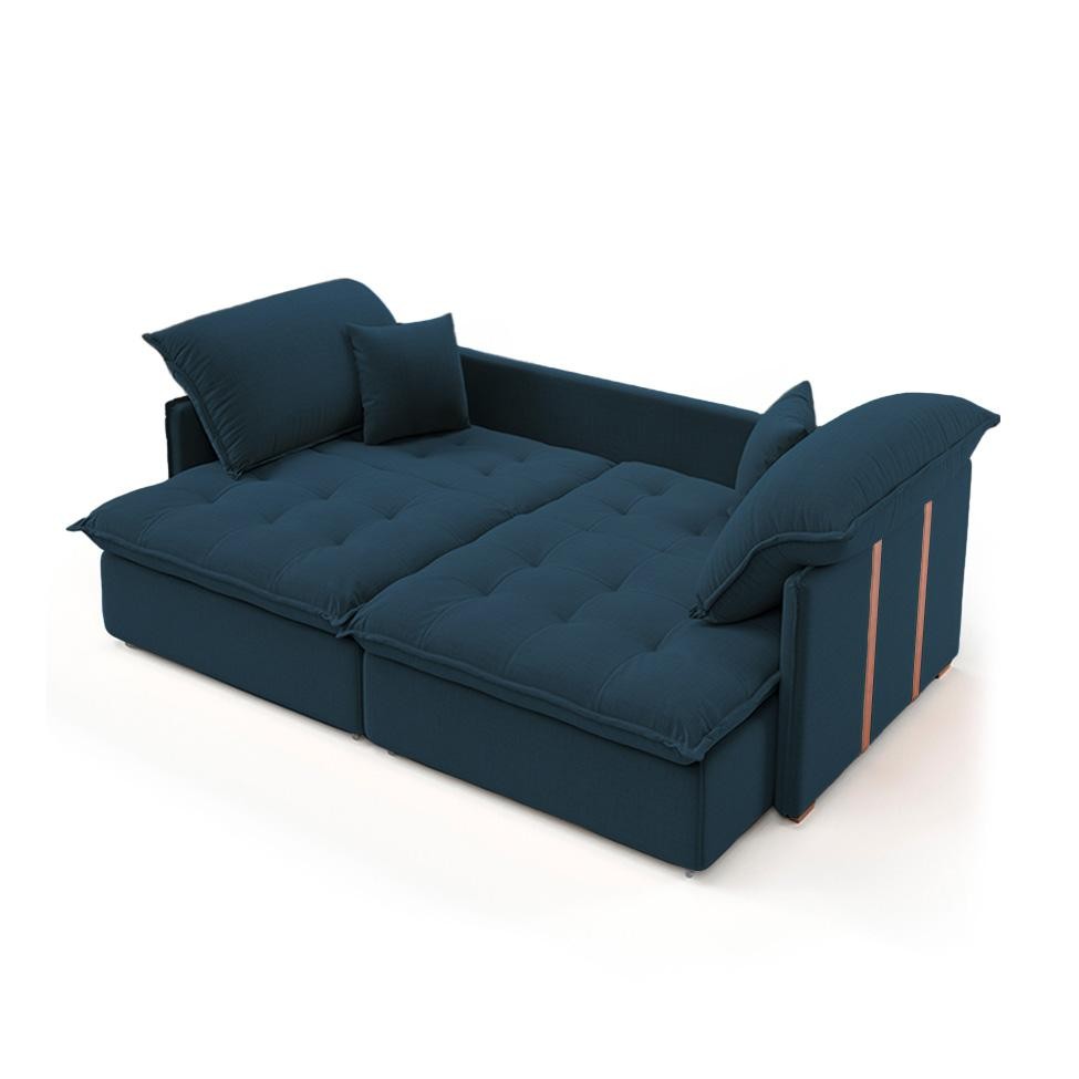 Sofá Retrátil Sem Caixa 2 lugares Solomons Linho Azul Marinho