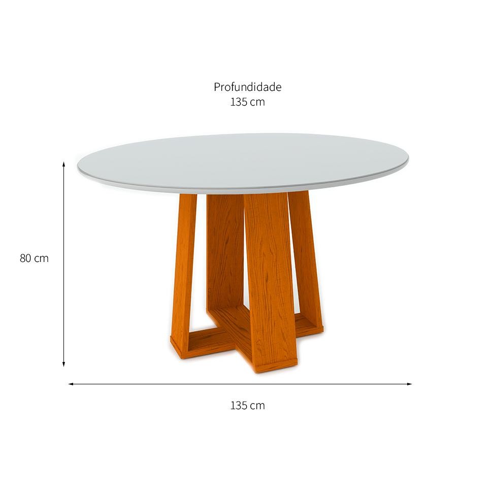 Mesa de Jantar Redonda com Tampo de Vidro Isabela Ipê e Off White 135 cm