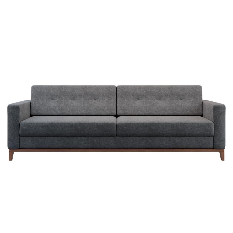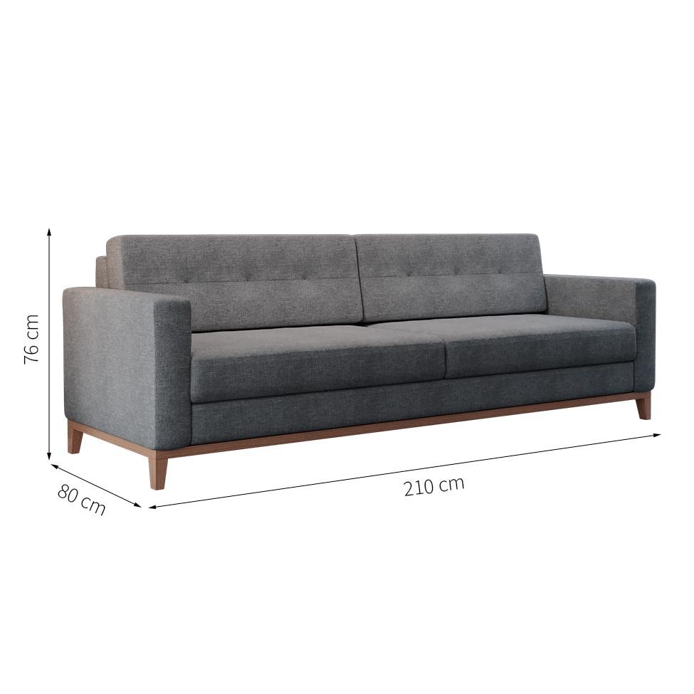 Sofá 3 Lugares Living Base de Madeira Linho Cotton Cinza 210 cm
