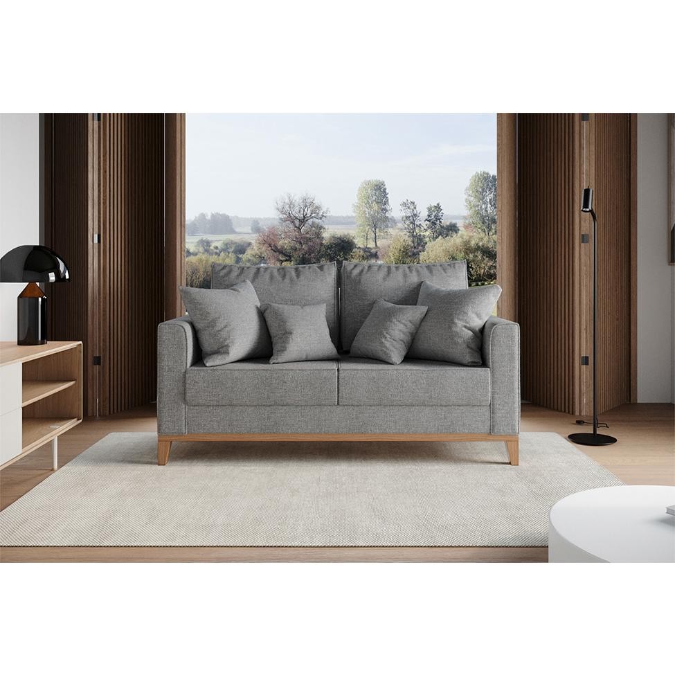 Sofá 2 Lugares Beny Base de Madeira Linho Cotton Cinza