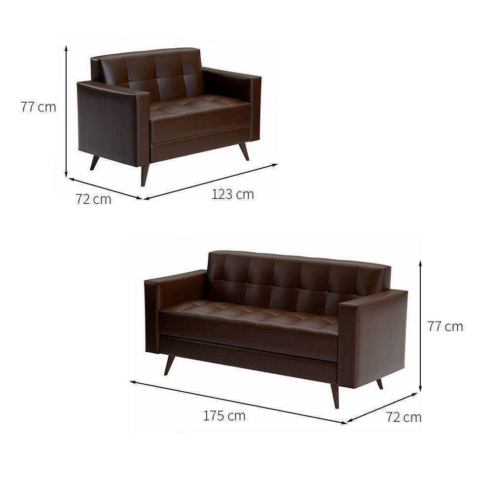 Sofá para Escritório e Recepção 3 Lugares Vitrola Revestimento Sintético Marrom