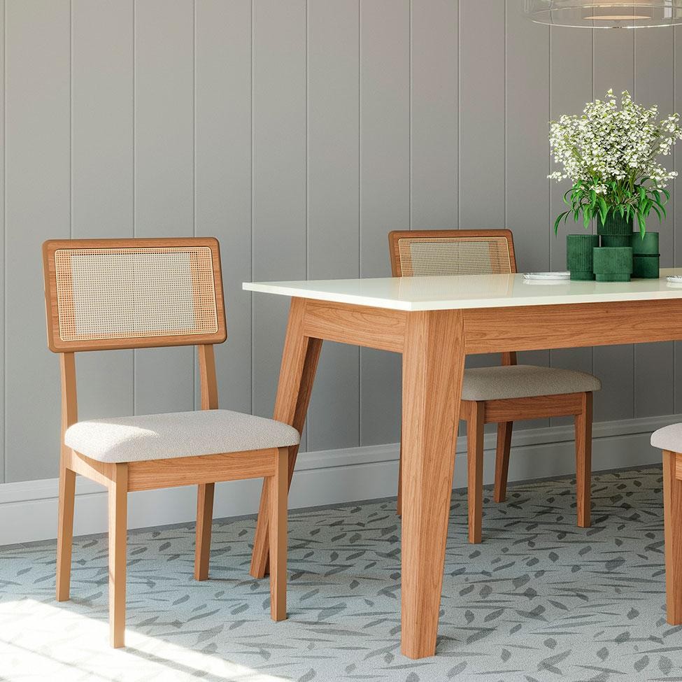 Conjunto com 2 Cadeiras Penny Algodão Cesare Claro e Freijó