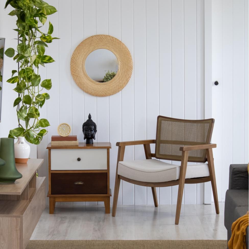Poltrona Dunas Encosto Tela Algodão Bege e Amêndoa