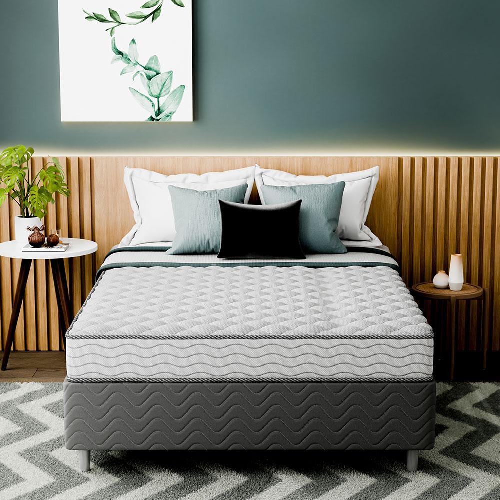Cama Box com Colchão Viúva Howie Espuma D45 (17x128x188) Branco e Cinza