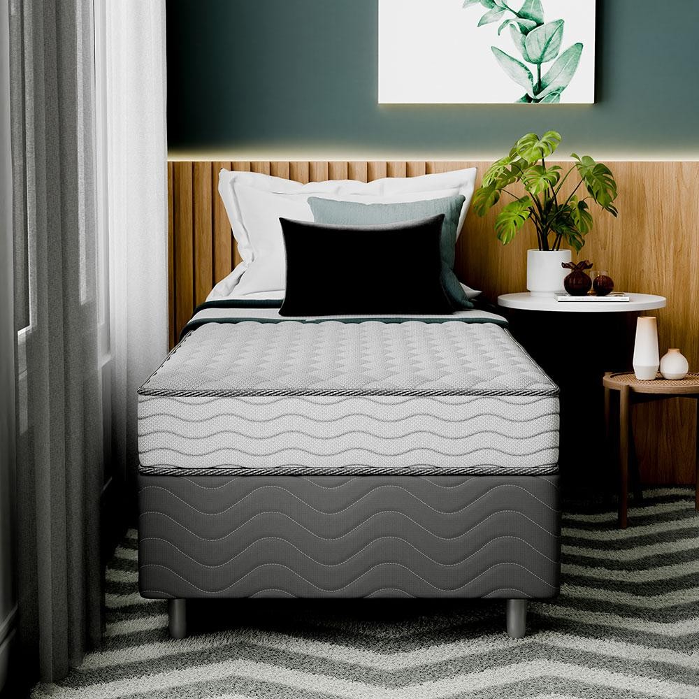 Cama Box com Colchão Solteiro Howie Misto D33 (17x88x188) Branco e Cinza