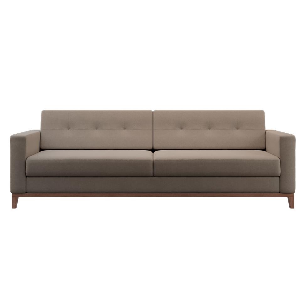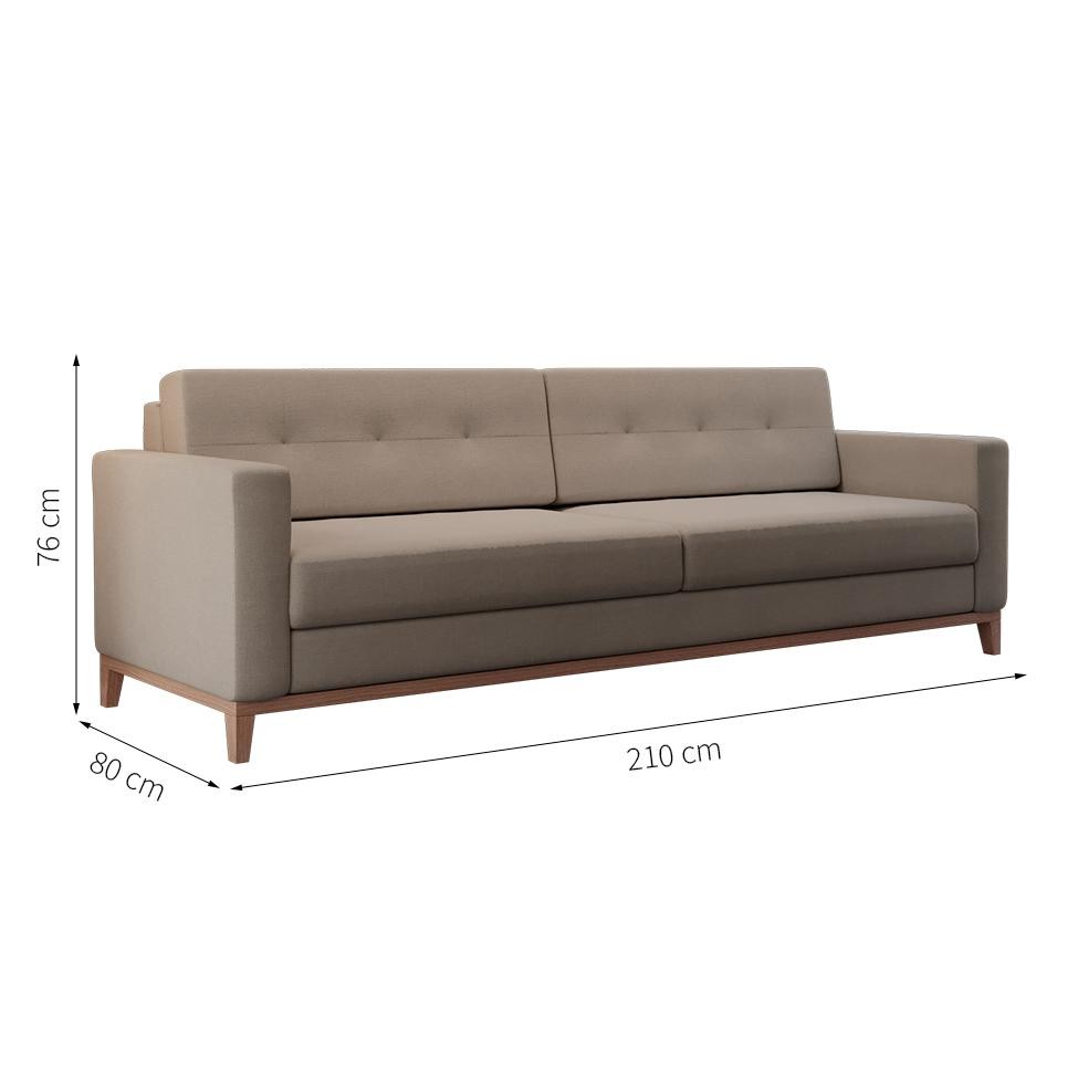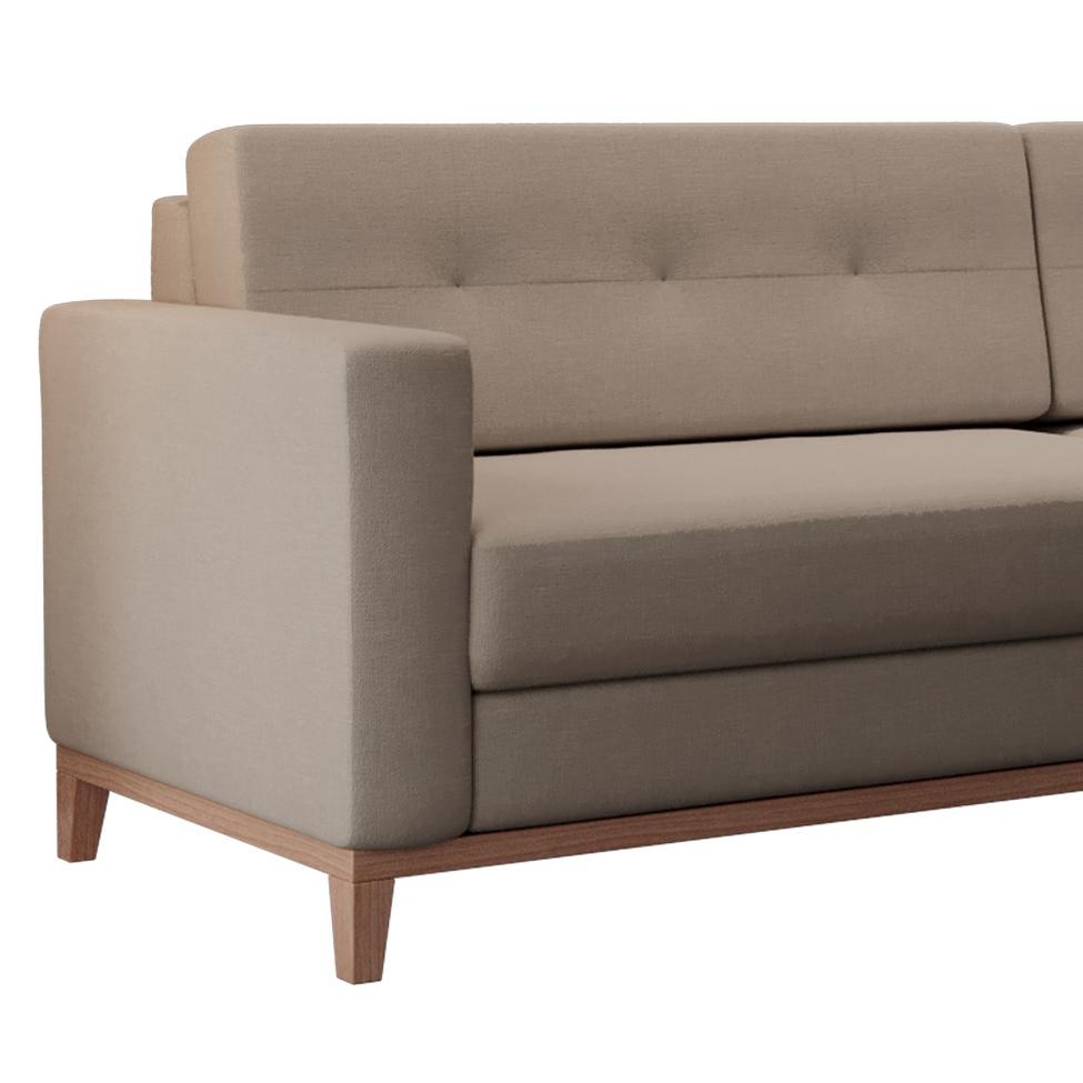 Sofá 3 Lugares Living Base de Madeira Linho Cotton Bege 210 cm