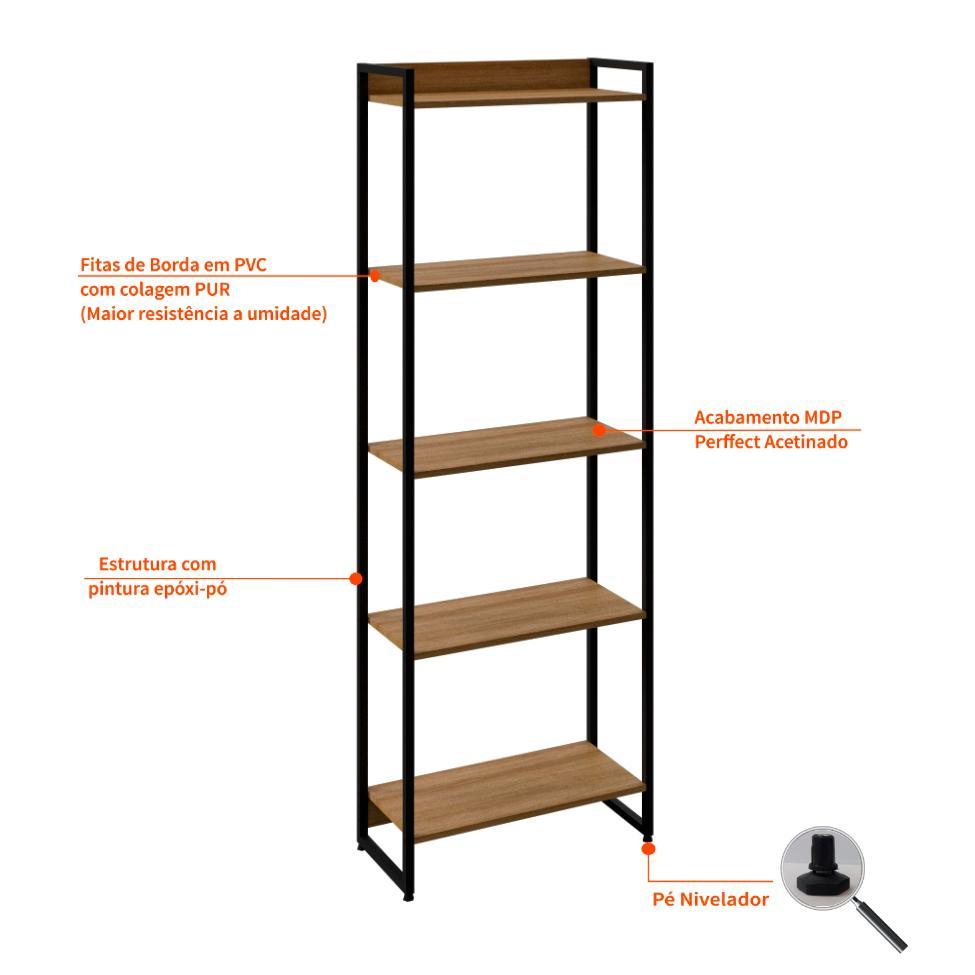 Estante Nanda Mel e Preta 187x60 cm
