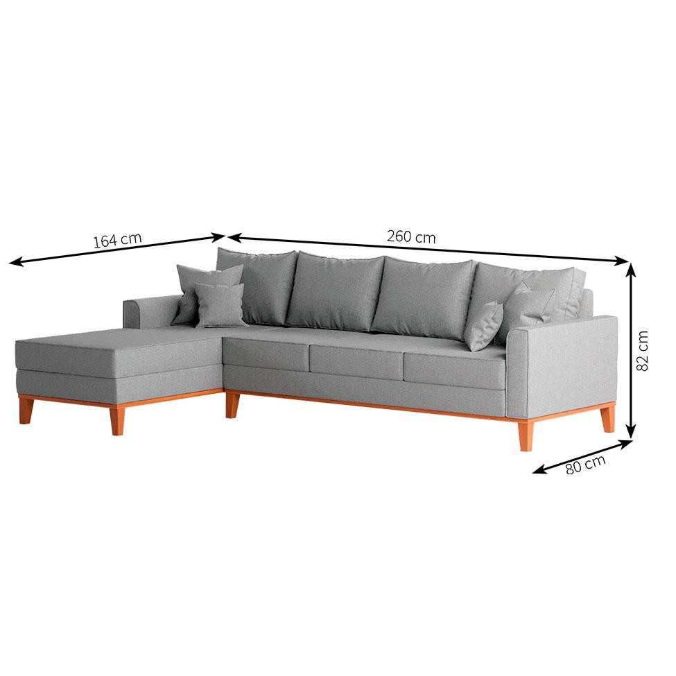 Sofá 4 Lugares Beny Com Chaise Esquerdo Linho Cinza