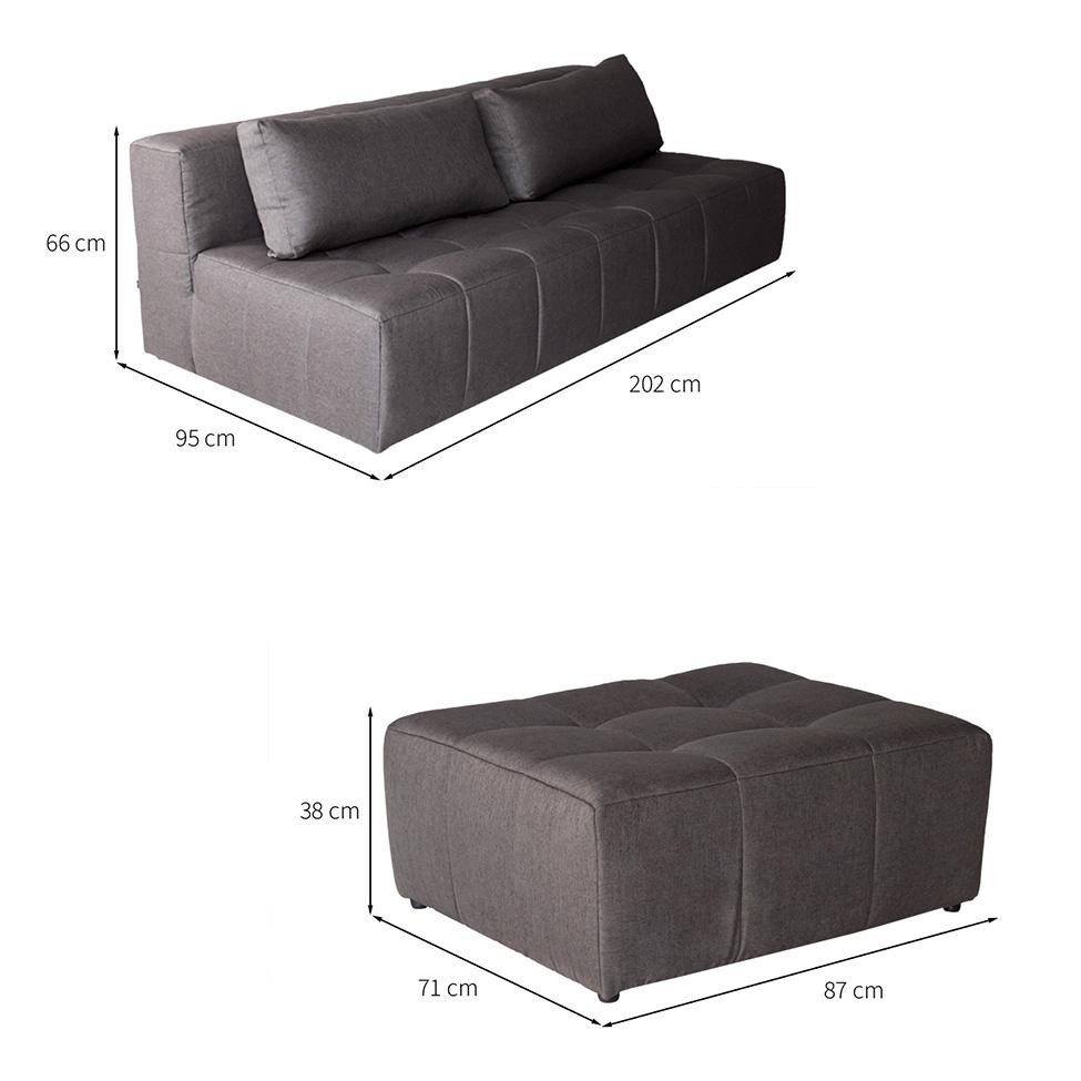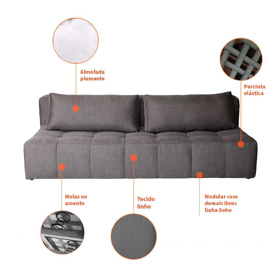 Sofá Modular 3 Lugares com Puff Soho Linho Grafite