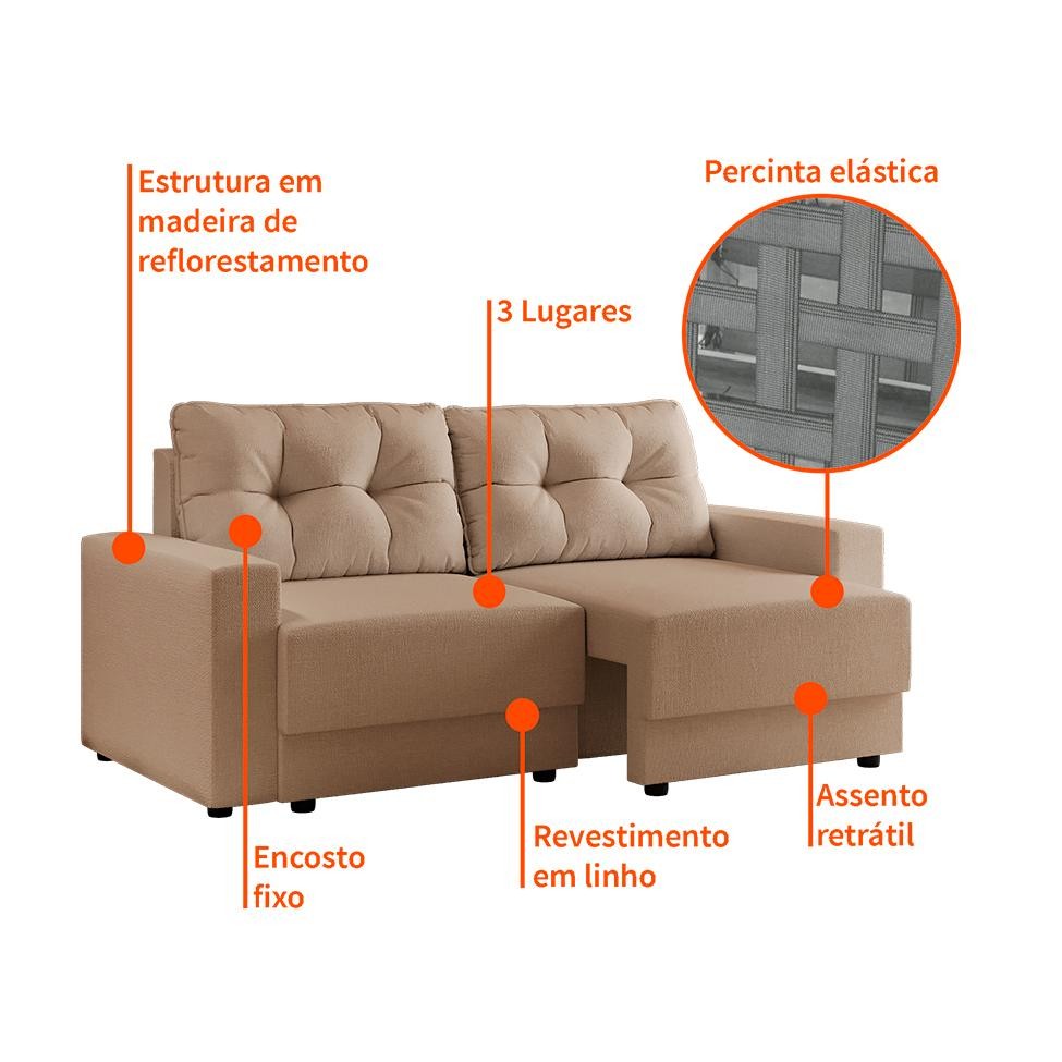 Sofá 3 Lugares Retrátil Lubeck Linho Bege