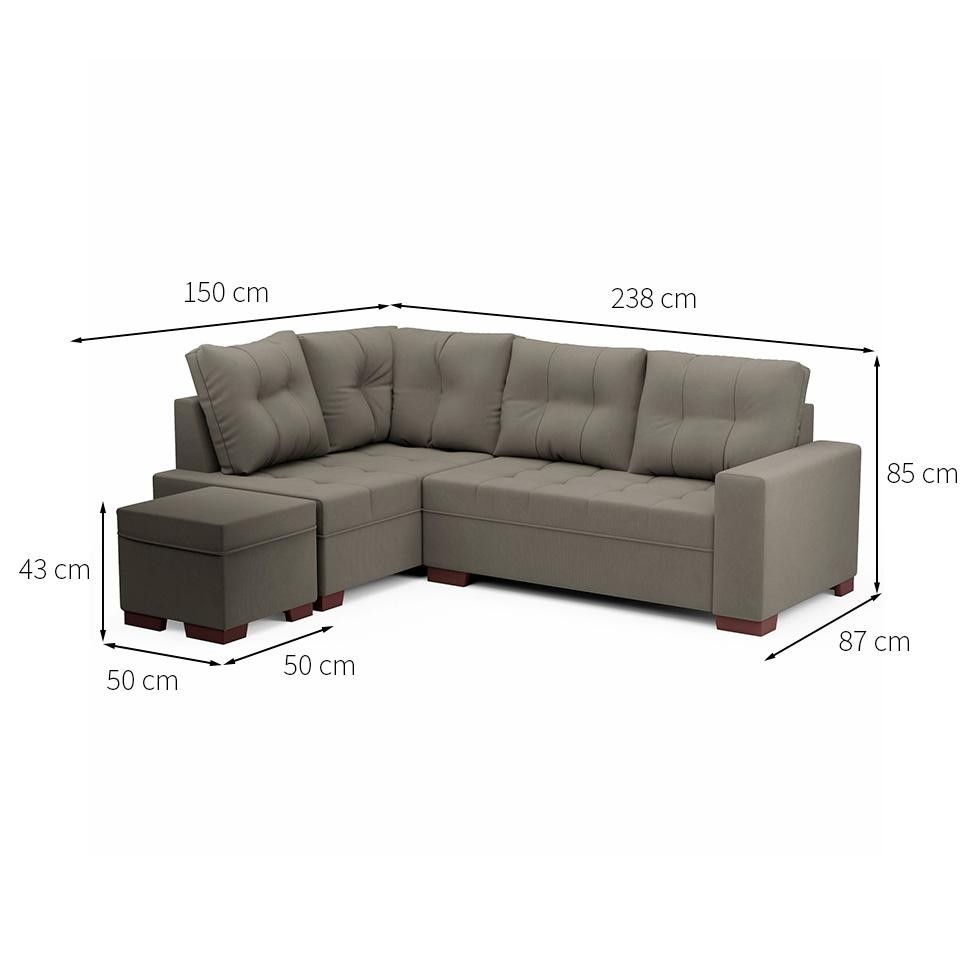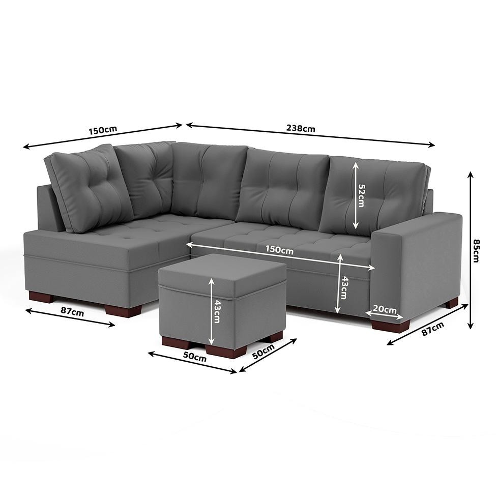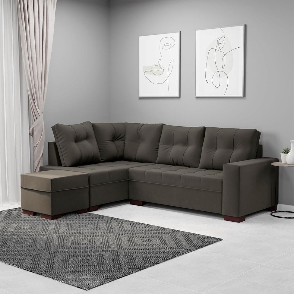Sofá de Canto 6 Lugares Gávea Suede Cinza