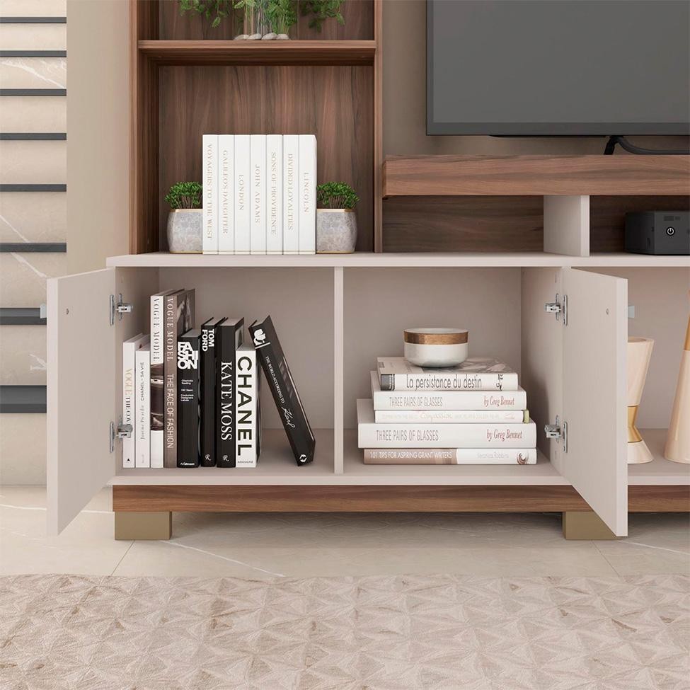 Estante para Home Theater e TV até 70 Polegadas 2 PT Nogueira e Off White