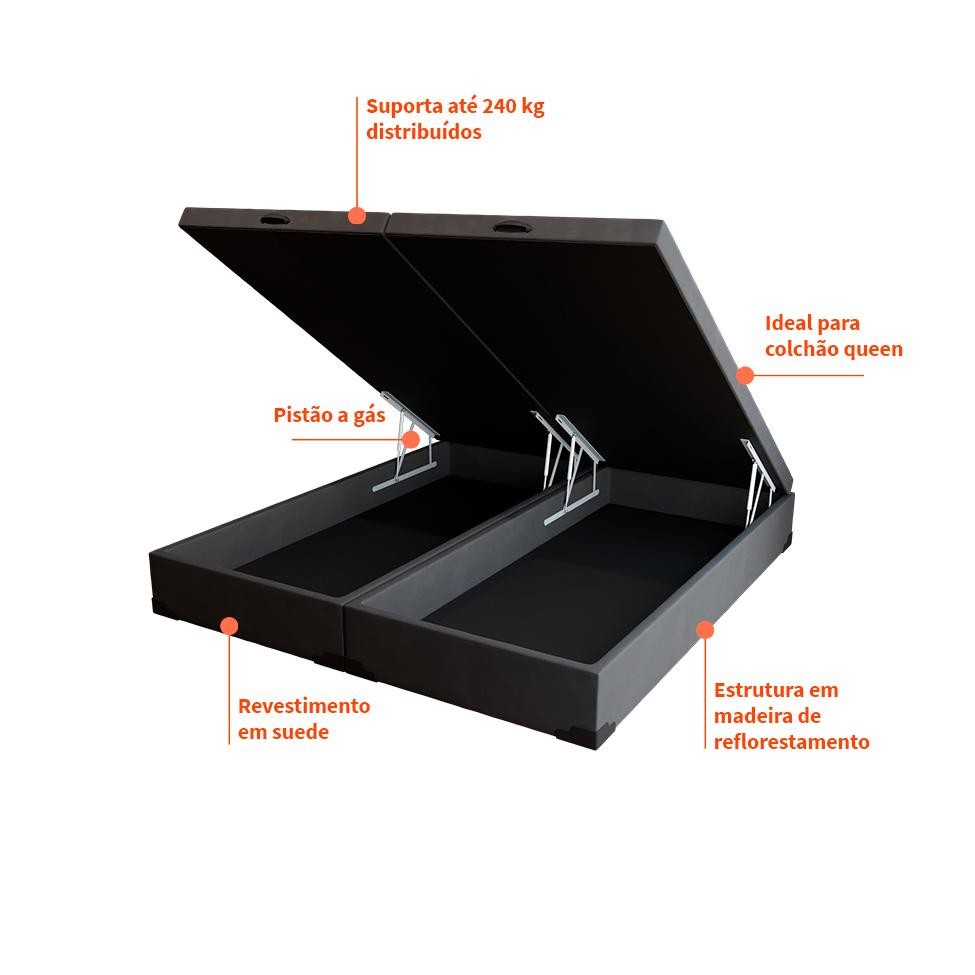 Base para Cama Box Queen Martin Premium com Baú Suede (47x158x198) Grafite