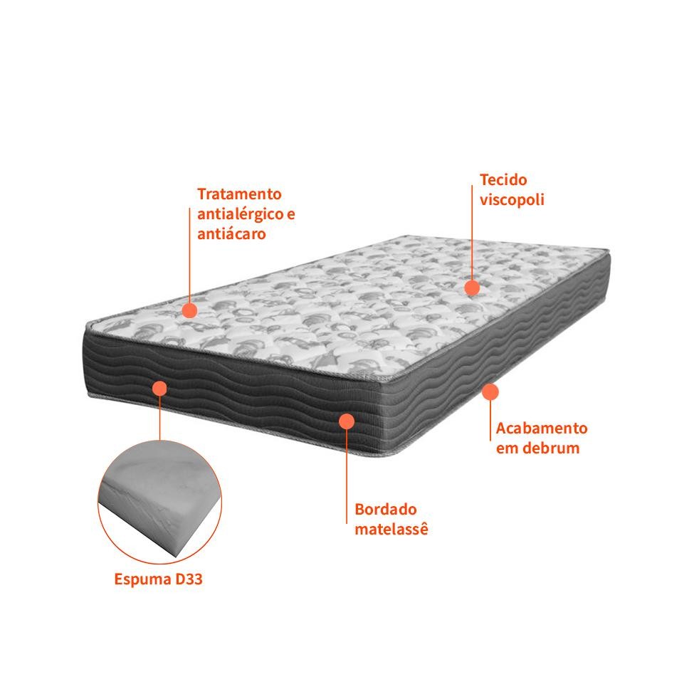 Colchão Solteiro de Espuma D33 Iso (18x88x188) Grafite