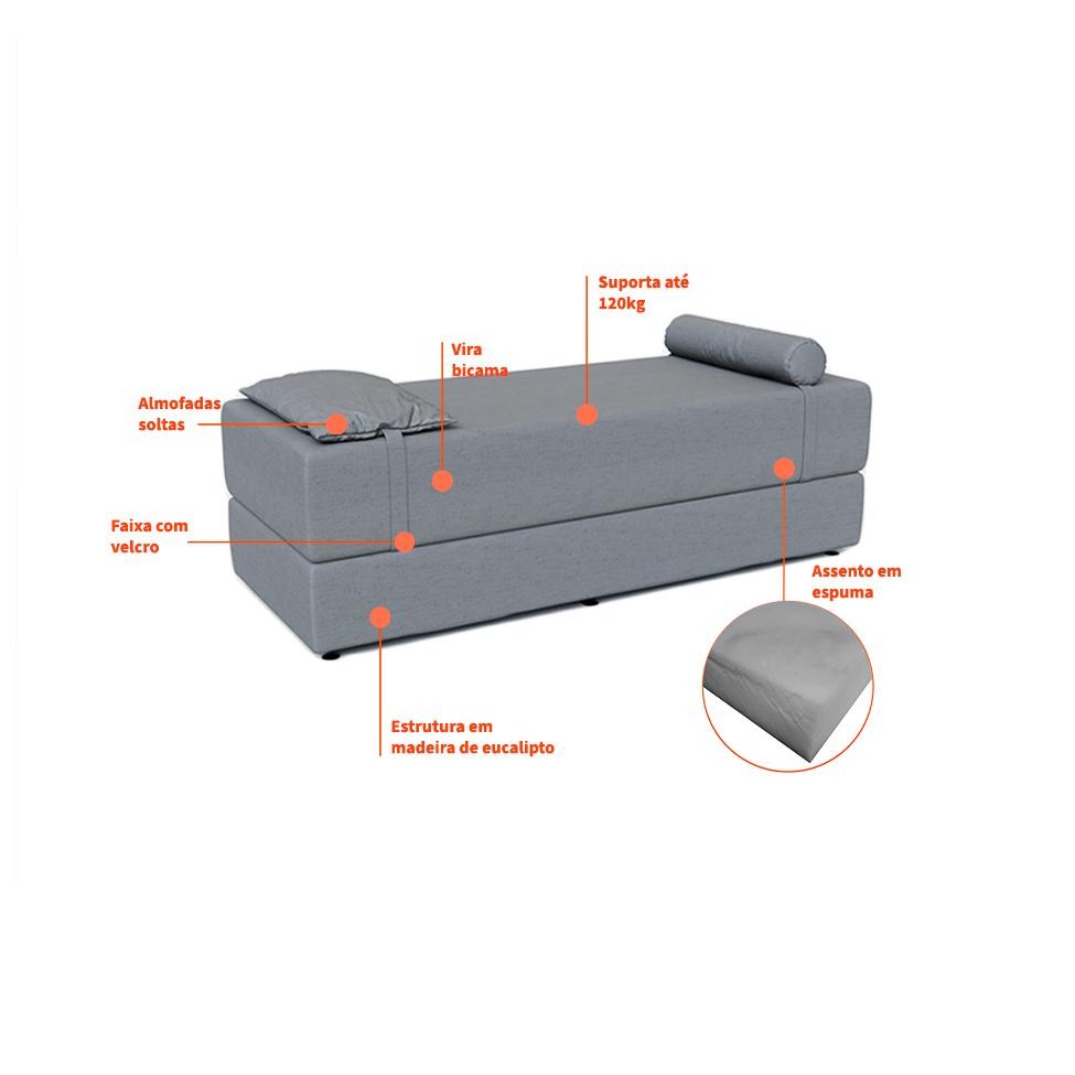 Sofá-Cama Casal 3 Lugares Cecília Linho Cinza