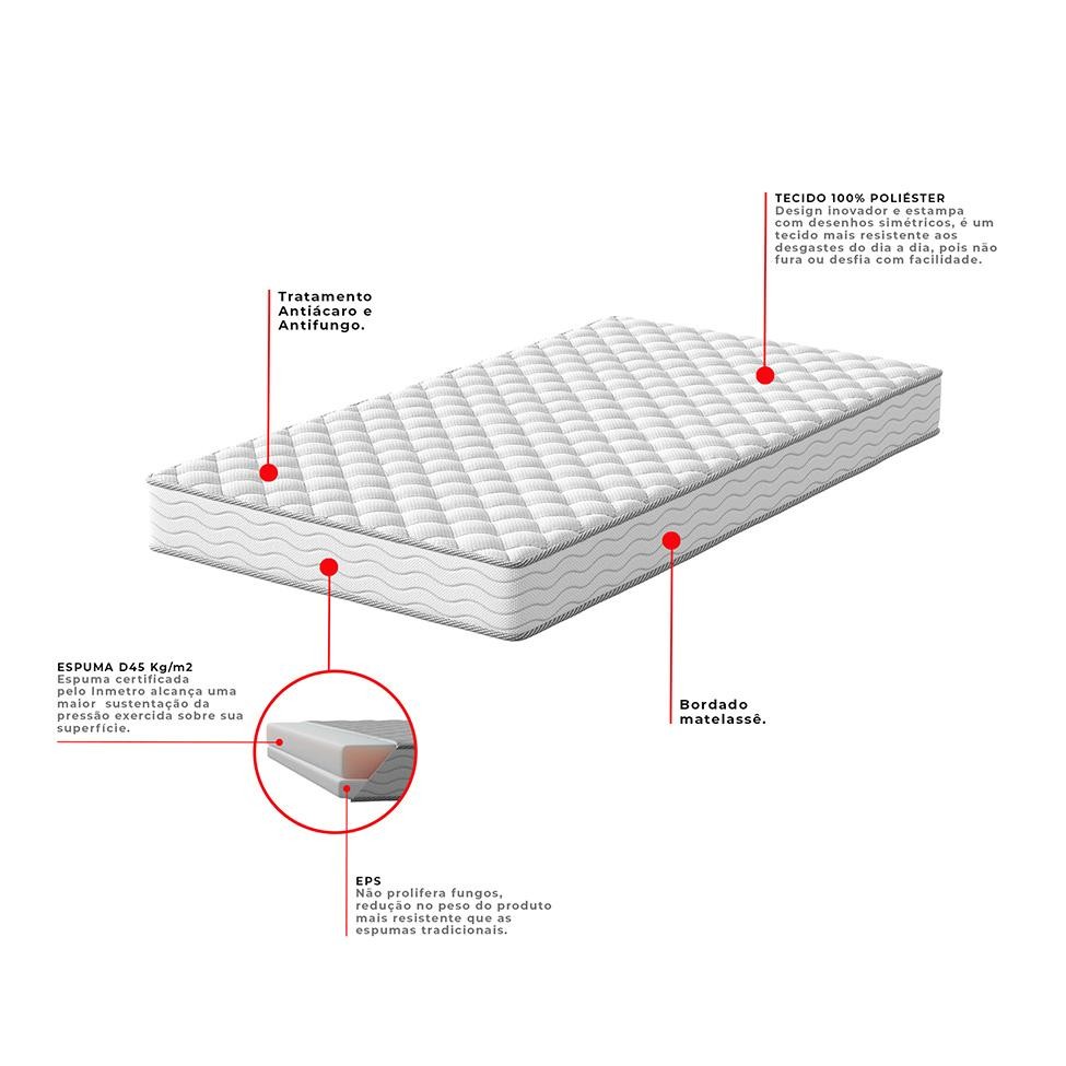 Cama Box com Colchão Casal Howie Espuma D45 (17x138x188) Branco e Cinza