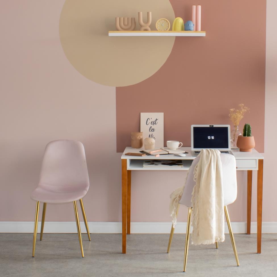 Conjunto com 2 Cadeiras Sindy Rosa Pernas Cromadas