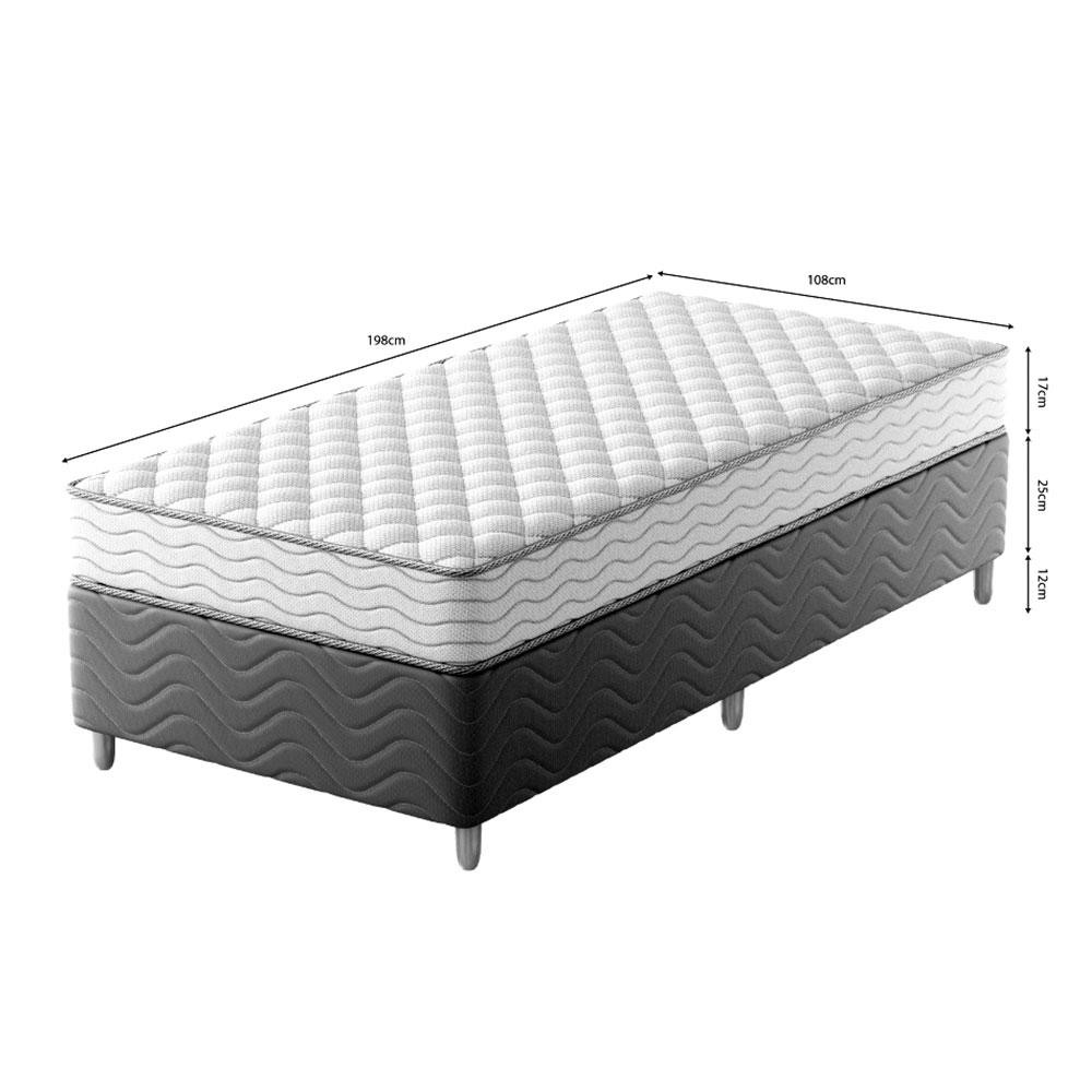 Cama Box com Colchão Solteirão Howie Espuma D45 (17x108x198) Branco e Cinza