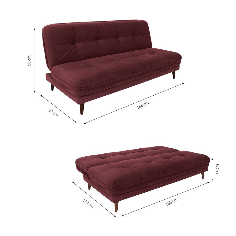 Sofá-Cama Casal 3 Lugares Anitta Suede Vinho