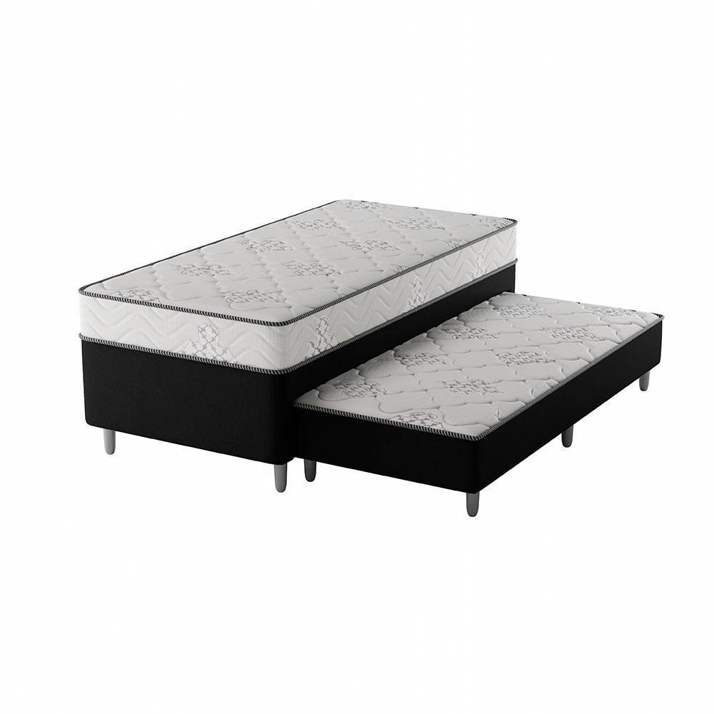 Cama Box Conjugada Solteiro Premier Unibox Molas Ensacadas (63x88x188) com Cama Auxiliar Preta