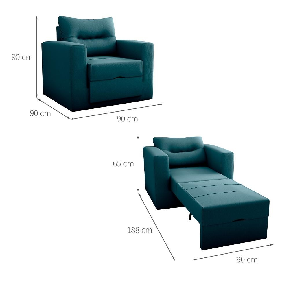 Sofá-Cama Solteiro Marisol Suede Petróleo
