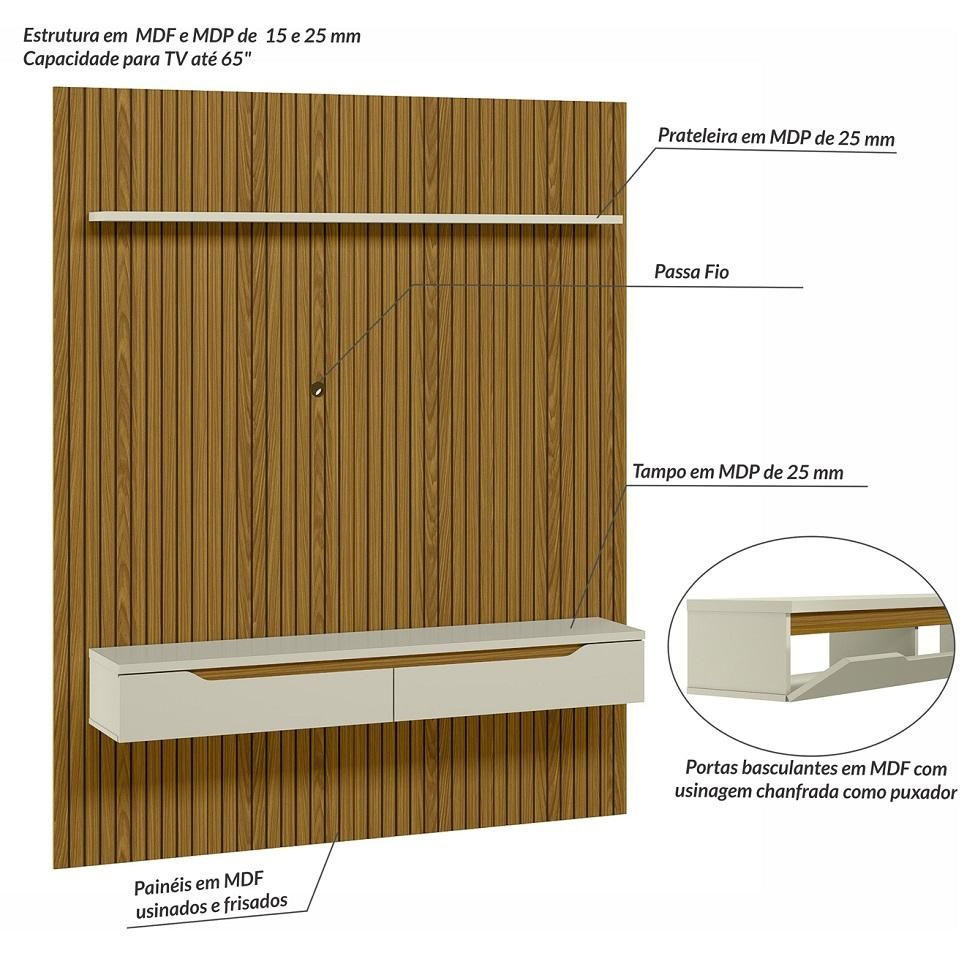 Painel para TV até 65 Polegadas Duetto 2 PT Cedro e Off White
