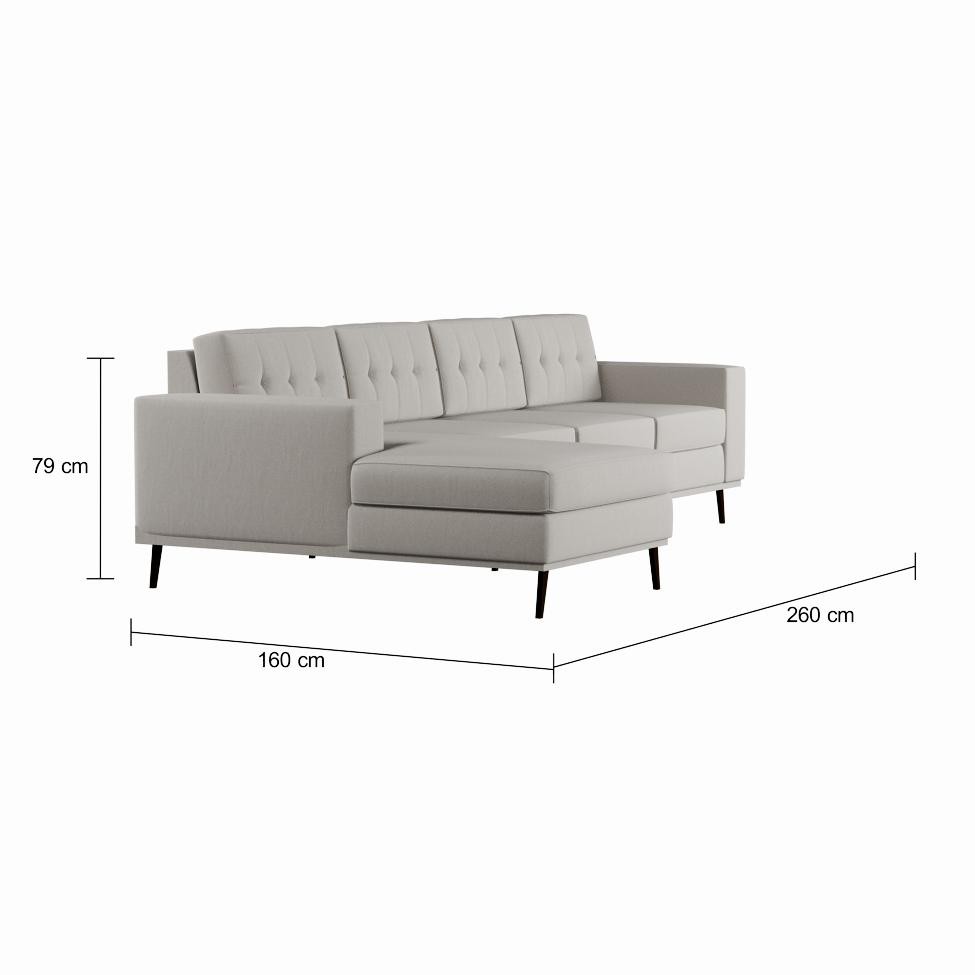 Sofá 4 Lugares Life com Chaise Esquerdo Pé Palito Linho Cotton Cru