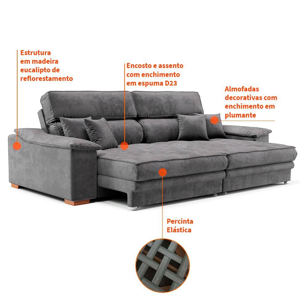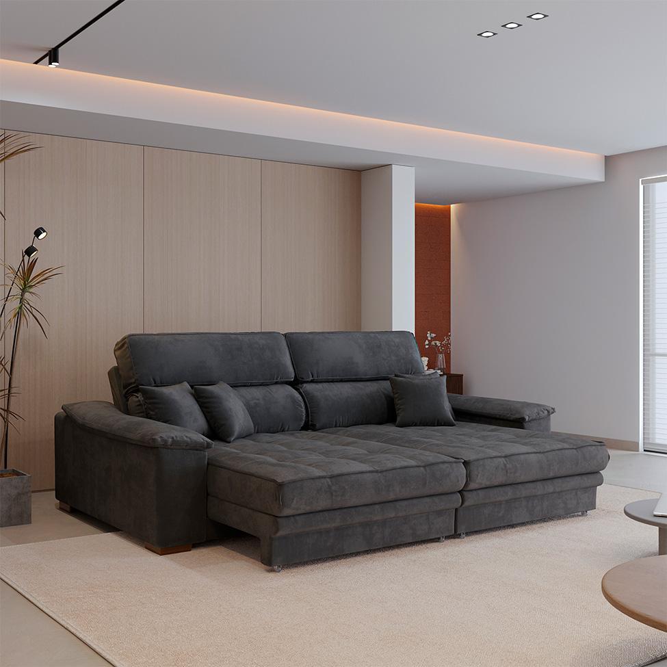 Sofá 3 Lugares Retrátil e Reclinável Lupin Veludo Grafite