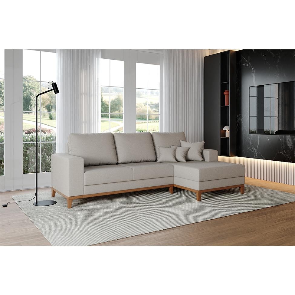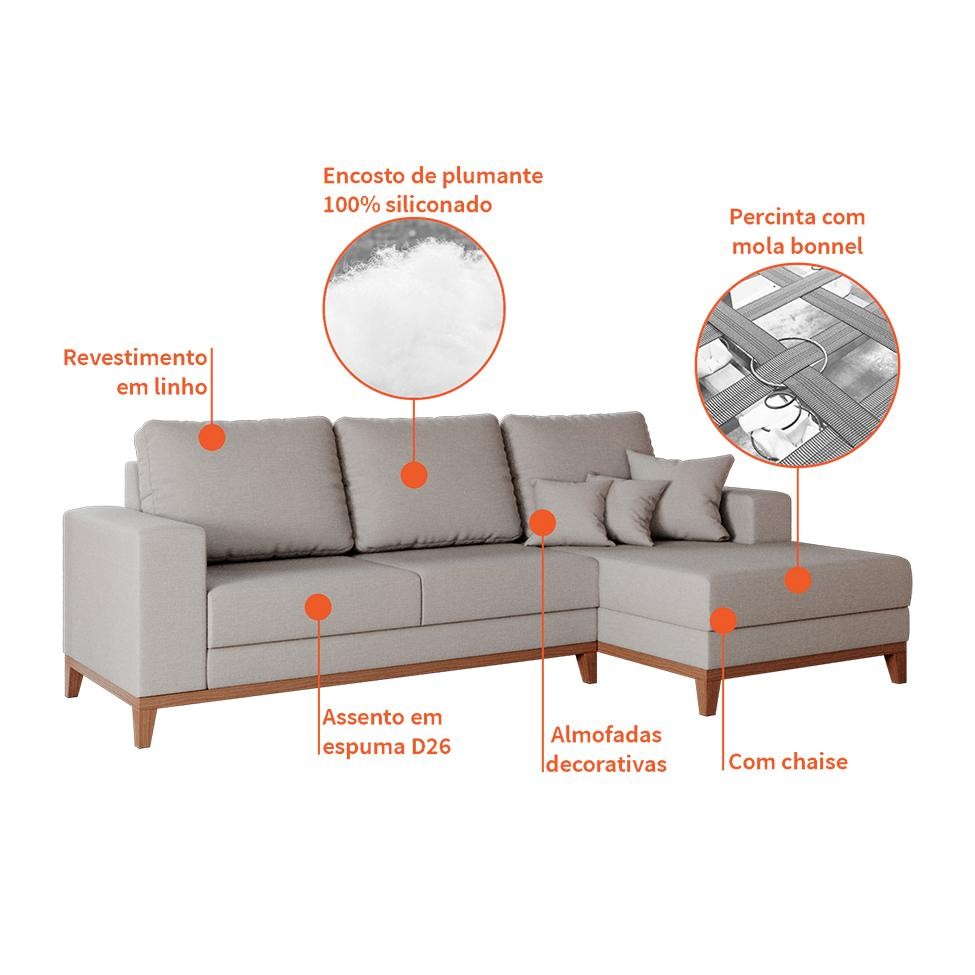 Sofá 4 Lugares Belgrado com Chaise Direito Linho Cru 250 cm