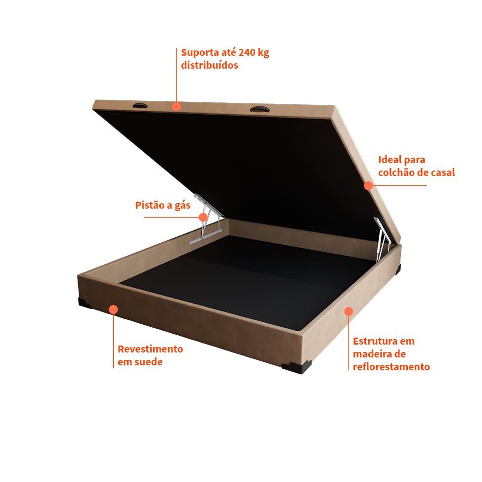 Base para Cama Box Casal Martin Premium com Baú Suede (45x138x188) Bege