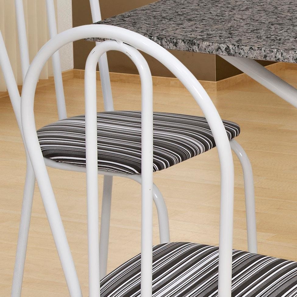 Conjunto de Mesa com 4 Cadeiras Thais Branco, Listrado Branco e Preto