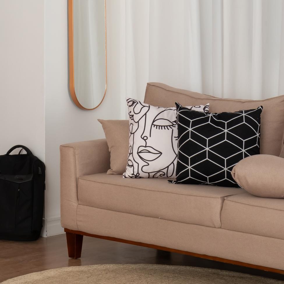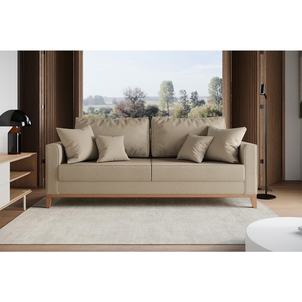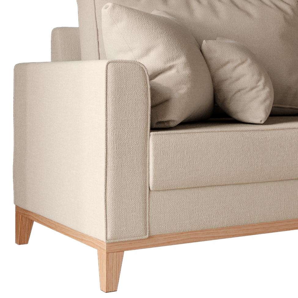 Sofá 3 Lugares Beny Base de Madeira Linho Cotton Bege