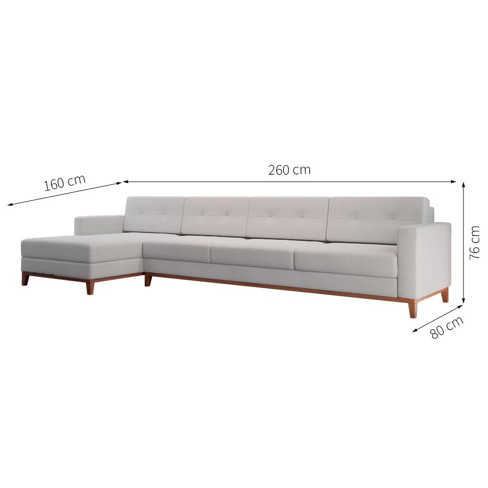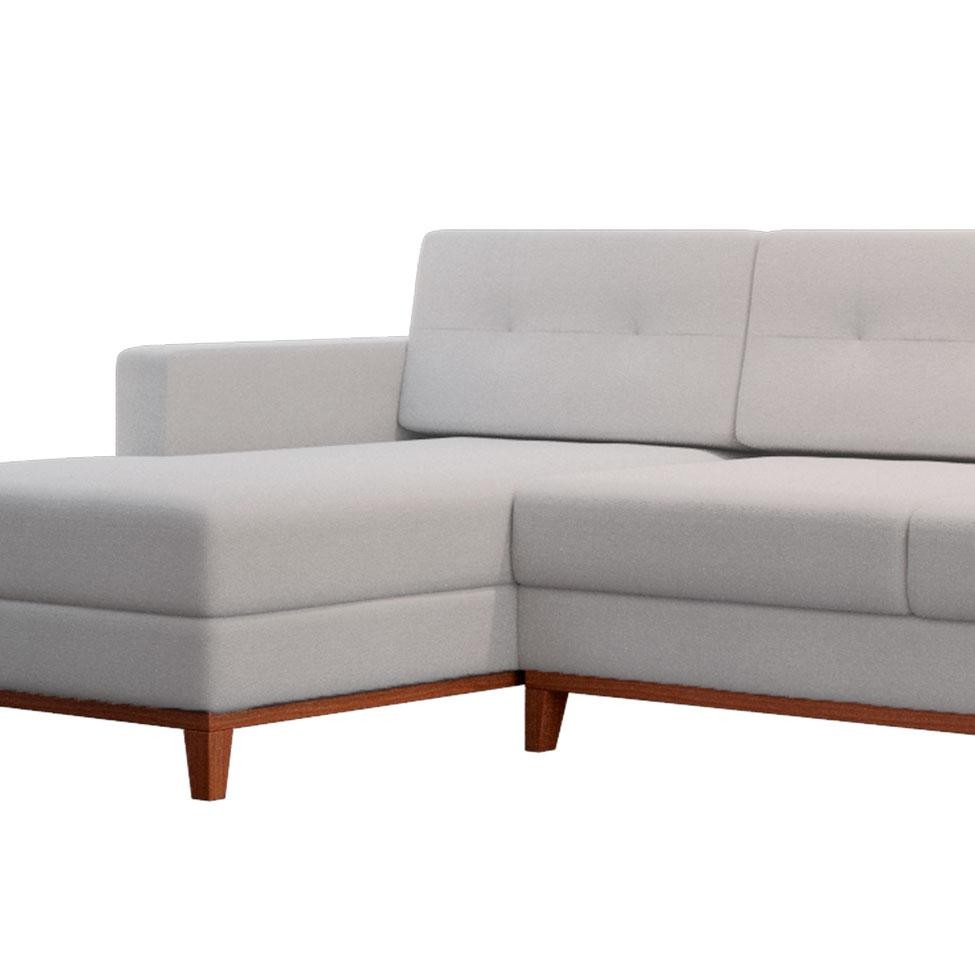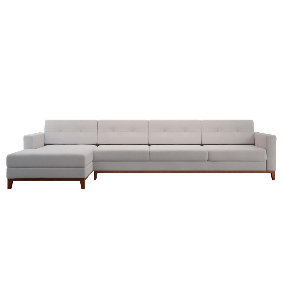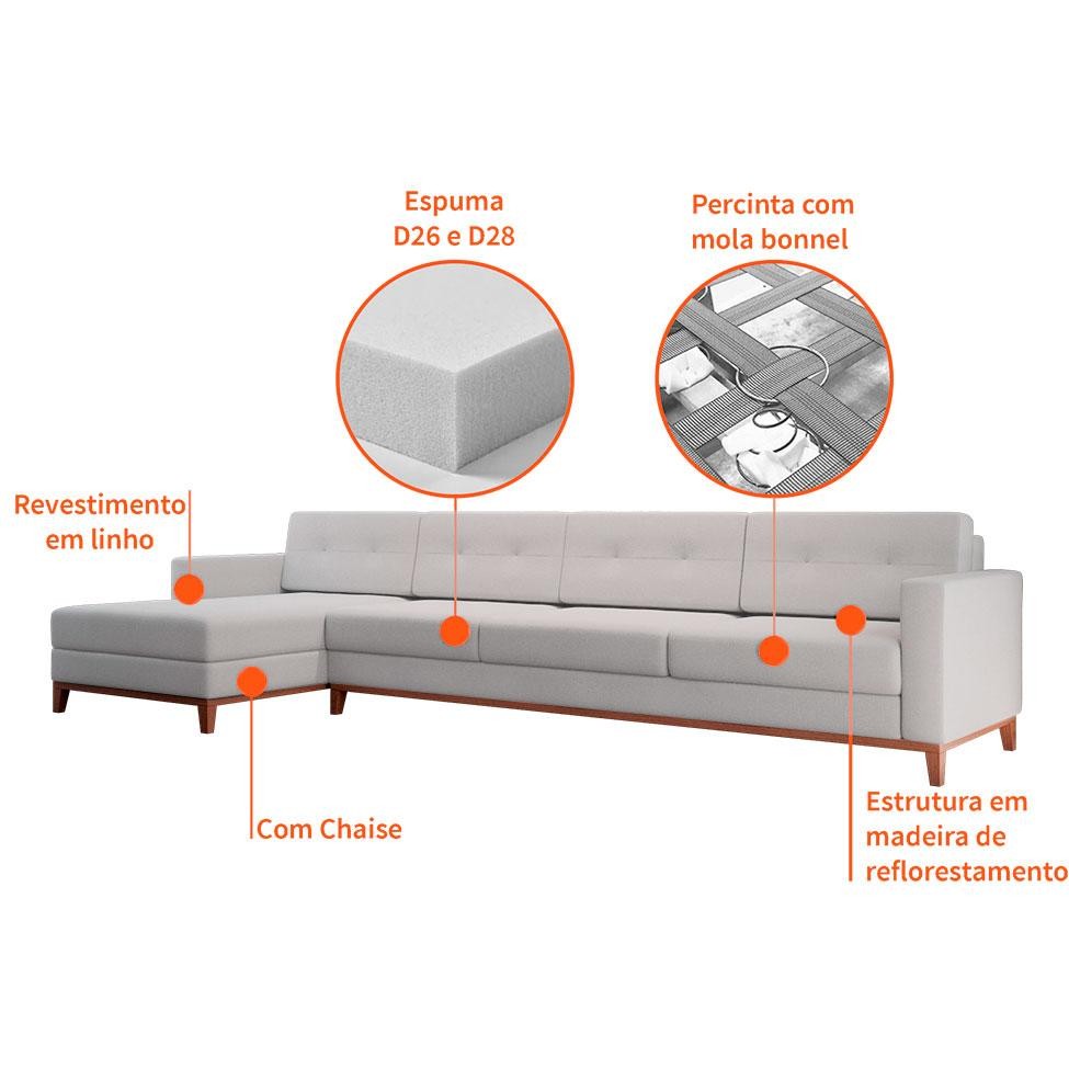 Sofá 4 Lugares Living com Chaise Esquerdo Pés e Base em Madeira Linho Cotton Cru