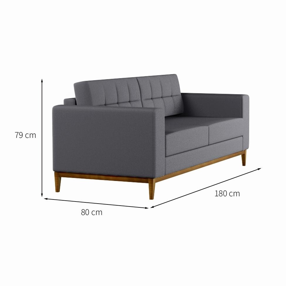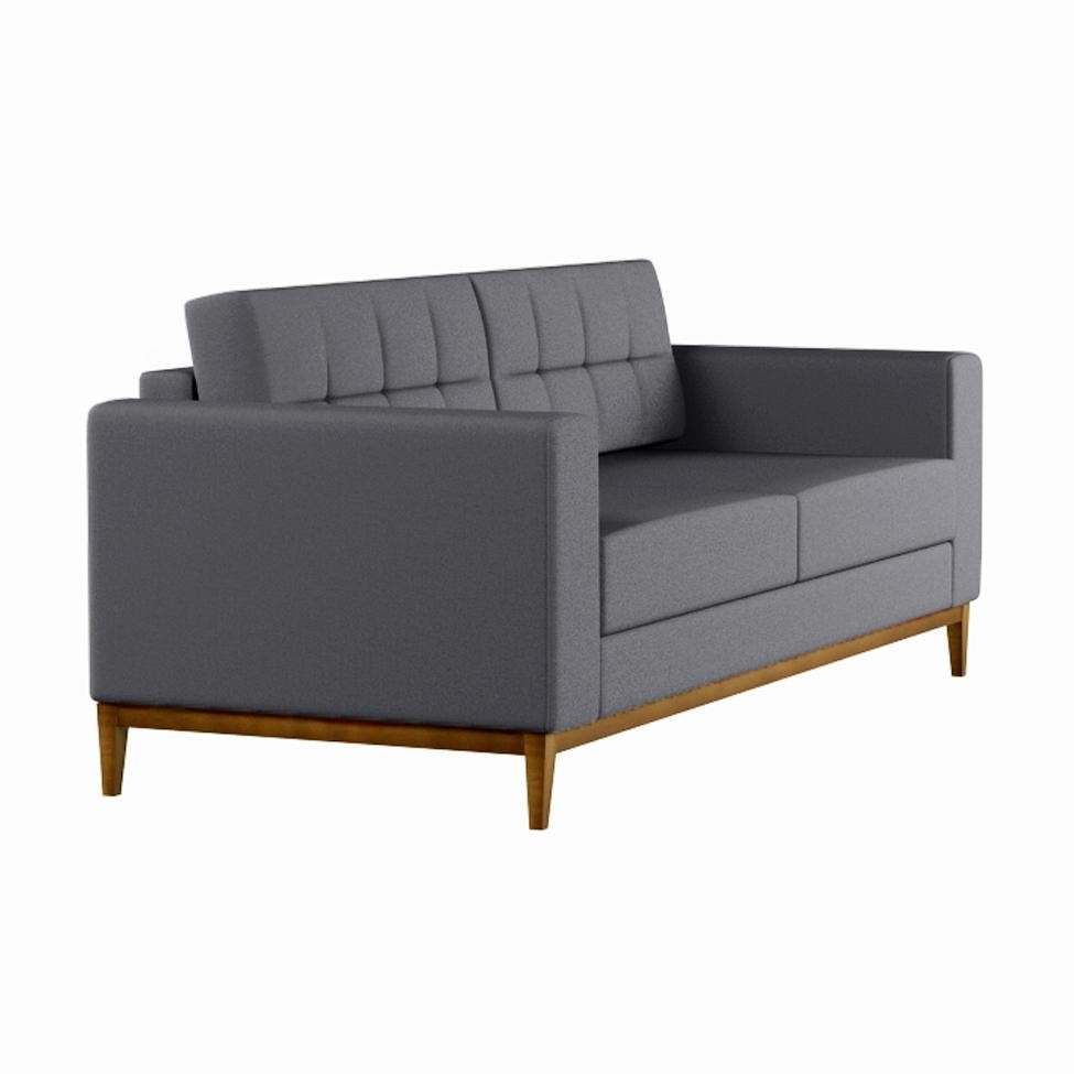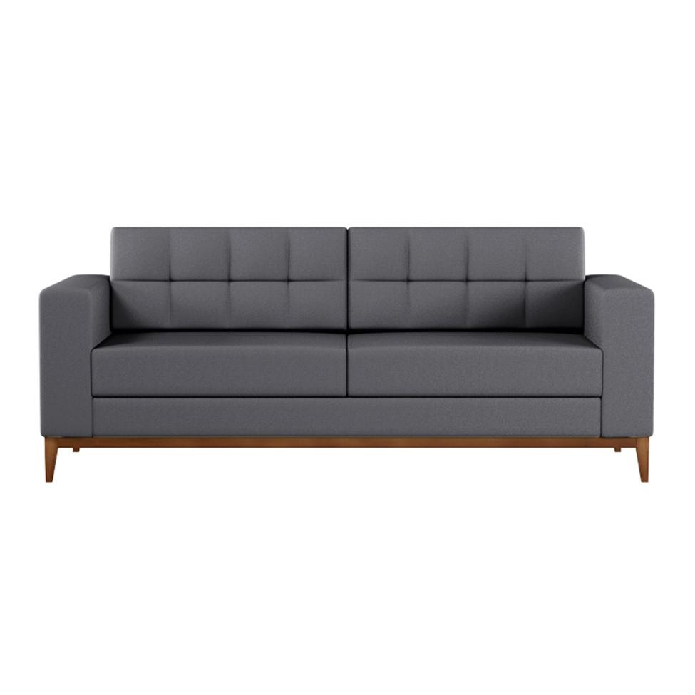 Sofá 3 Lugares Joy Pés e Base em Madeira Linho Cotton Cinza 180 cm