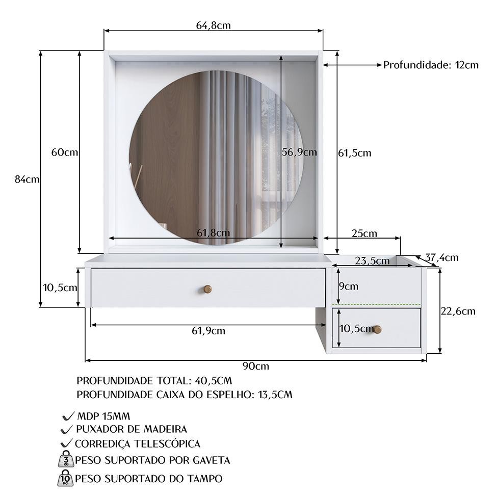 Penteadeira Suspensa com Espelho Fiorela 2 GV Branca