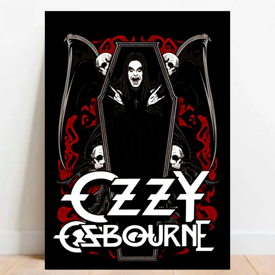 Quadro Placa Decorativa Ozzy Osbourne Black Sabbath banda de rock Metal com moldura 02