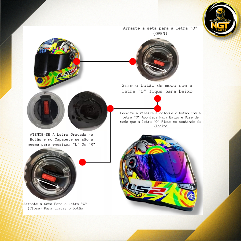 Kit Reparo Botão Fixação Viseira Ls2 Ff358 Helt Strada Fw3 Gt Texx Mormaii