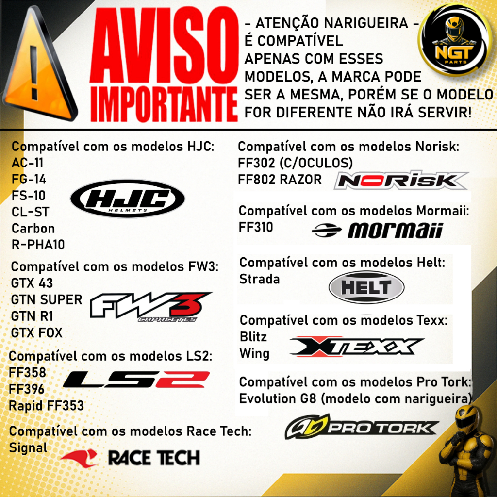 Narigueira Modelo Original Ls2 Norisk FW3 Mormaii HJC Pro Tork Texx Helt Race Tech Ff358 Ff302 Razor