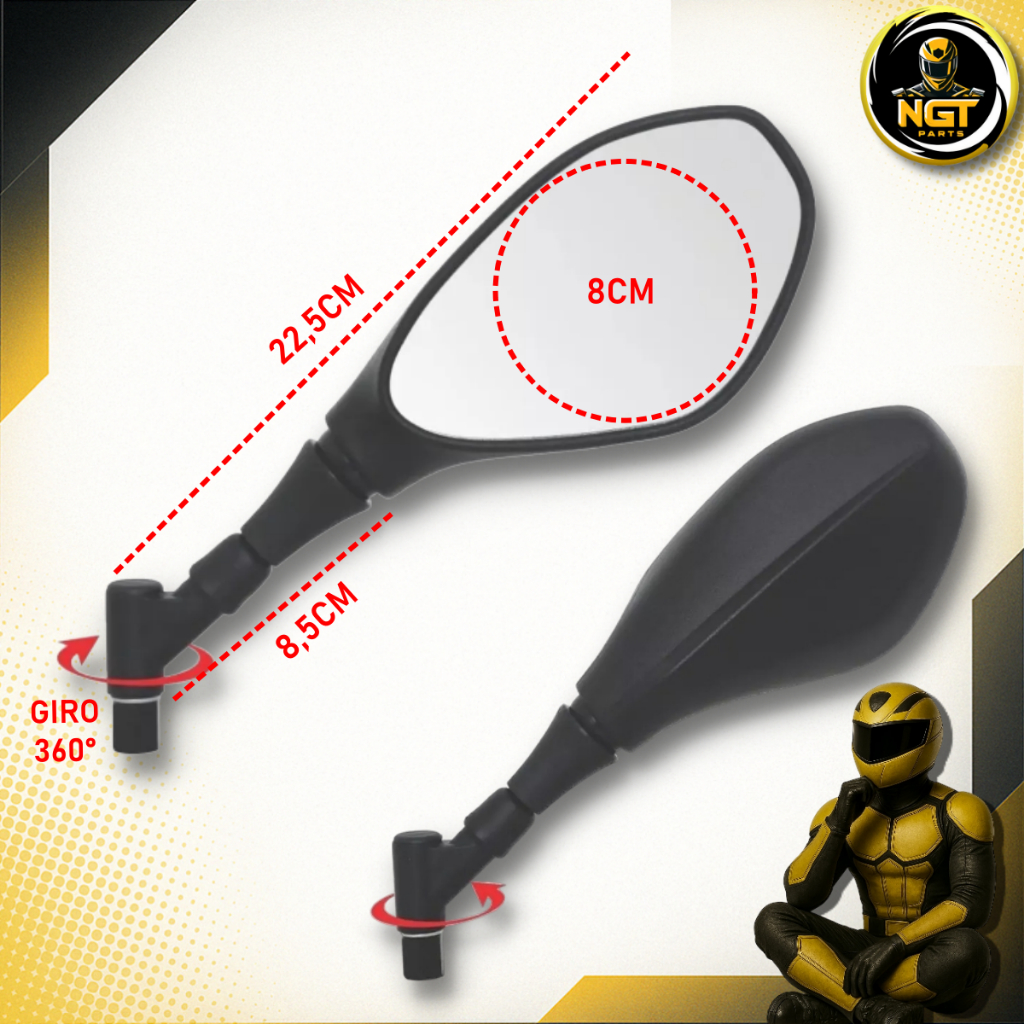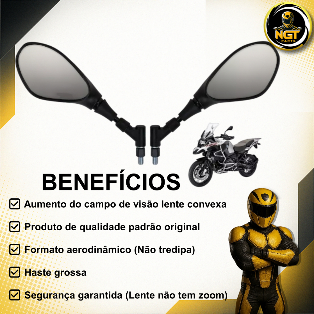 Retrovisor Bmw F800 Haste Curta 360° Articulado Retratil Gs1200 Honda Yamaha Titan Fan Fazer Lander