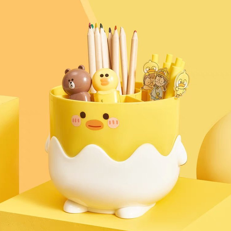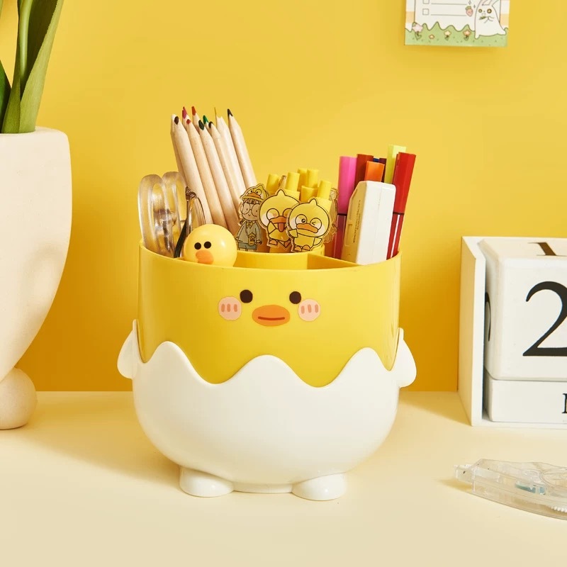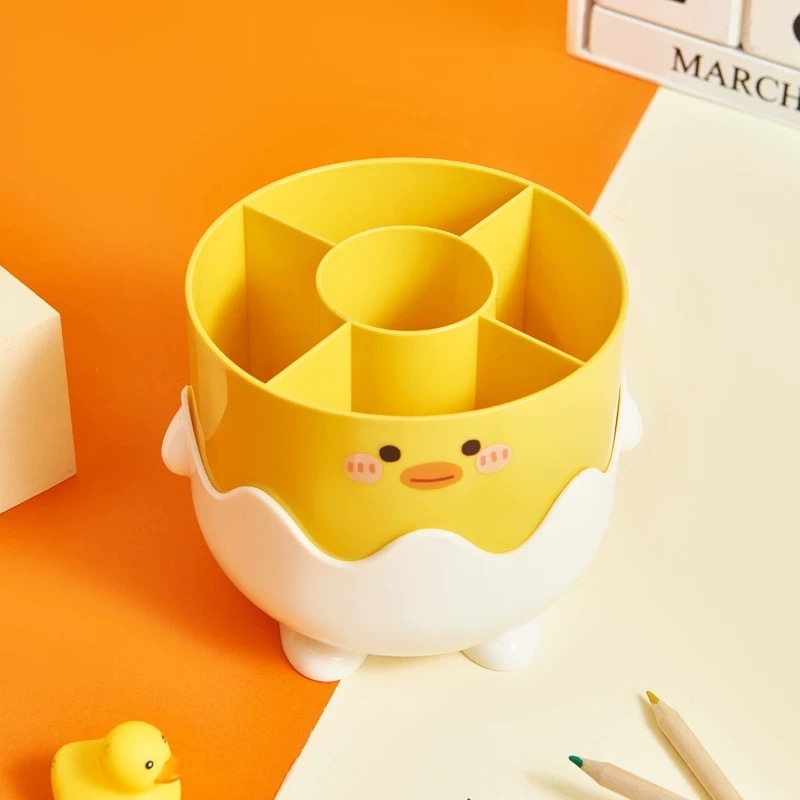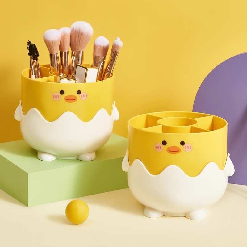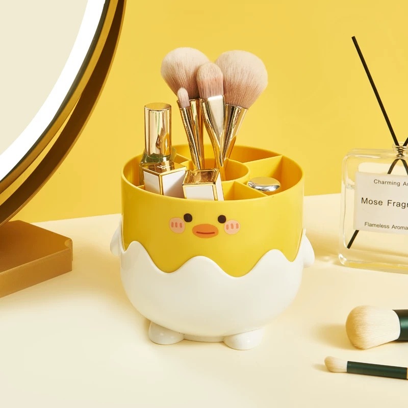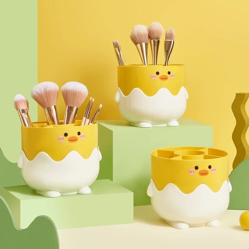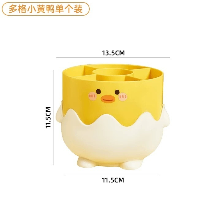 Porta Pincéis Maquiagem Patinho Fofo com Divisórias - Organizador de Mesa Multifuncional
