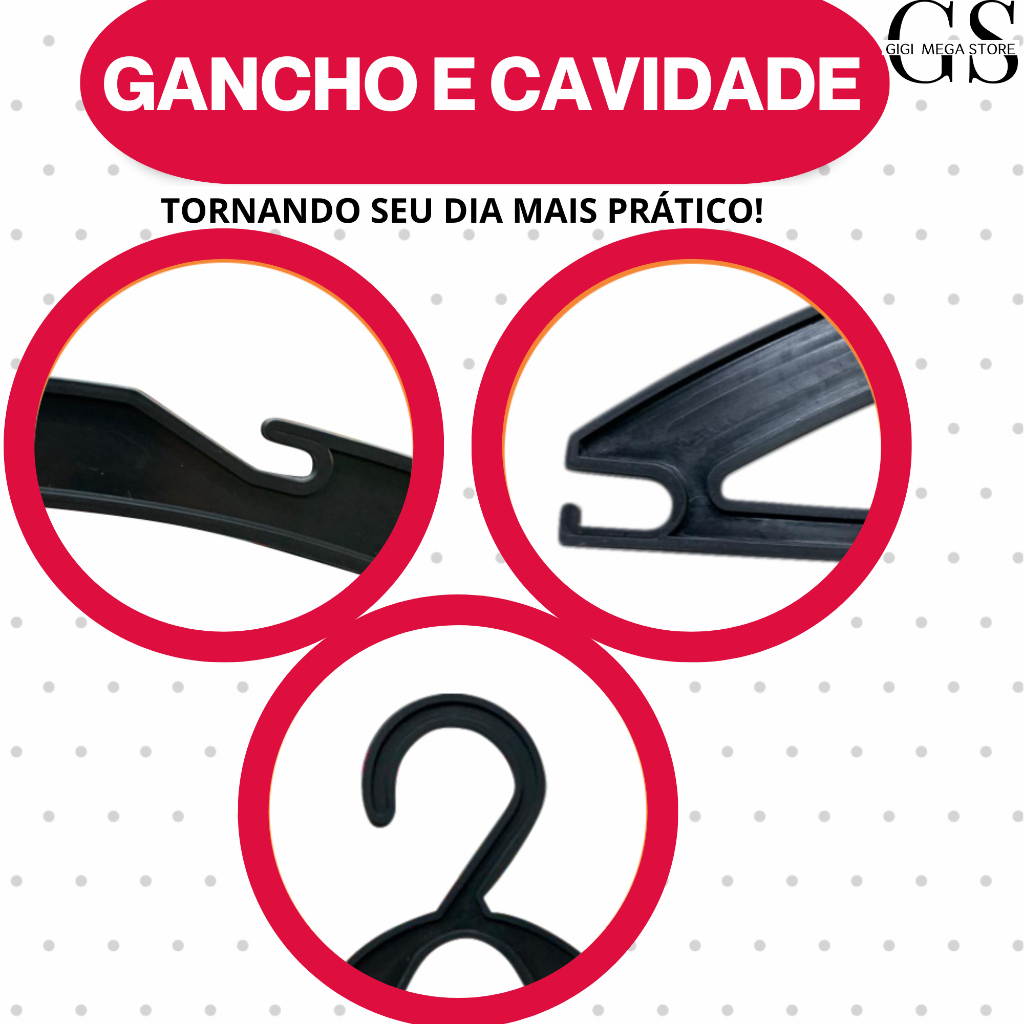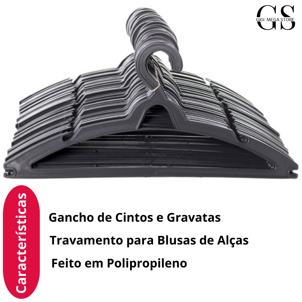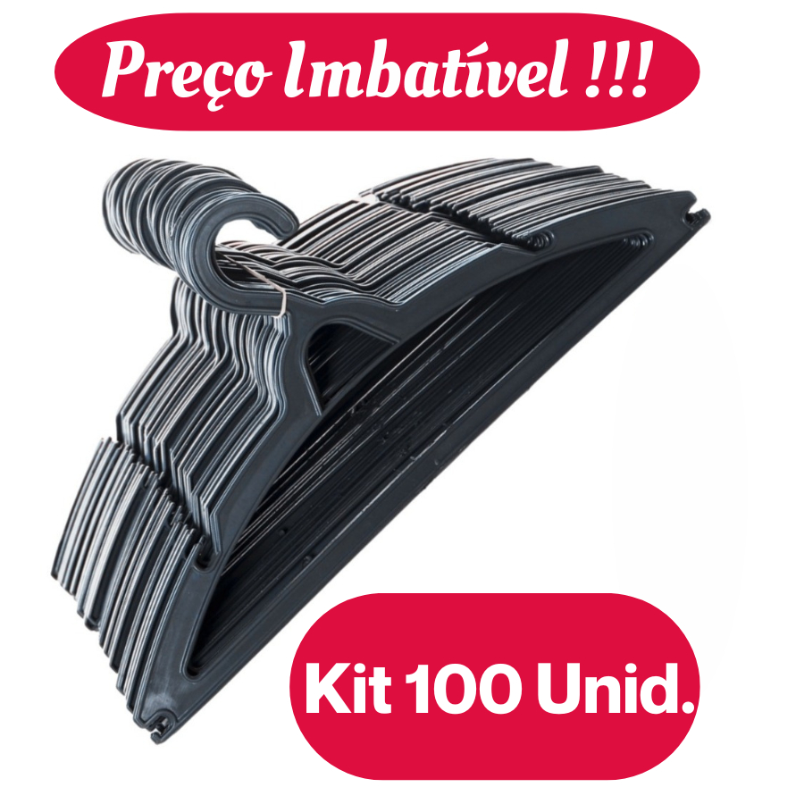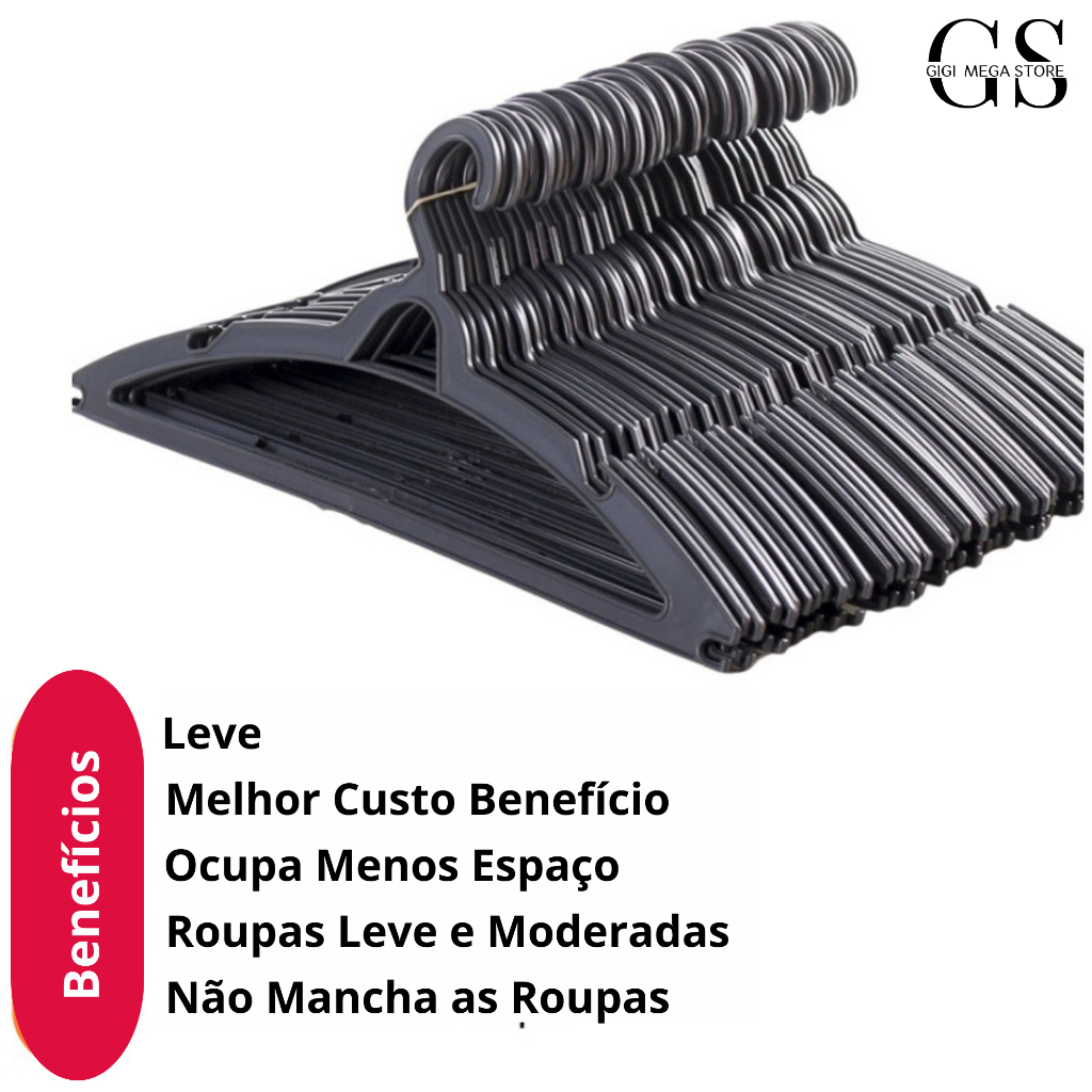 Kit 10 a 100 Cabide Adulto Plástico Preto - Envio Imediato