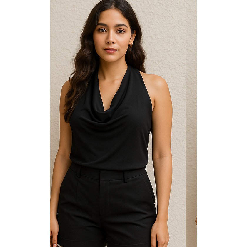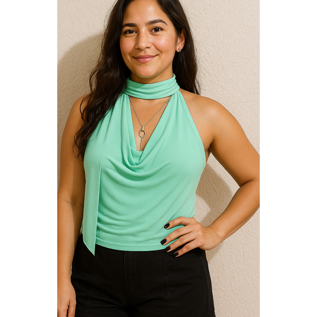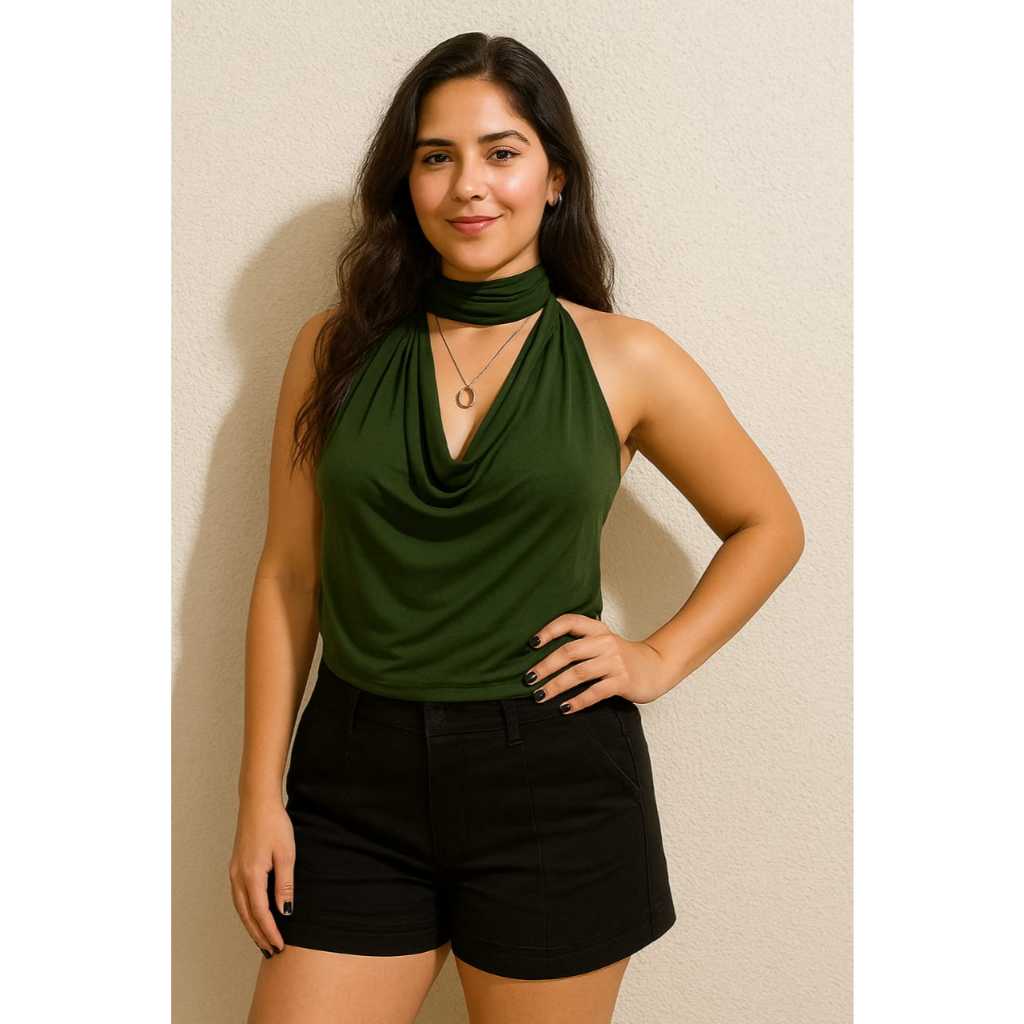 Blusa Feminina Decote Drapeado Com Costas Abertas