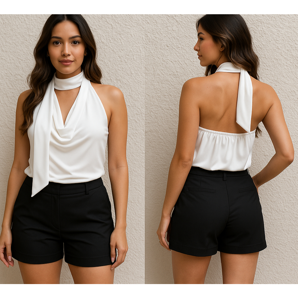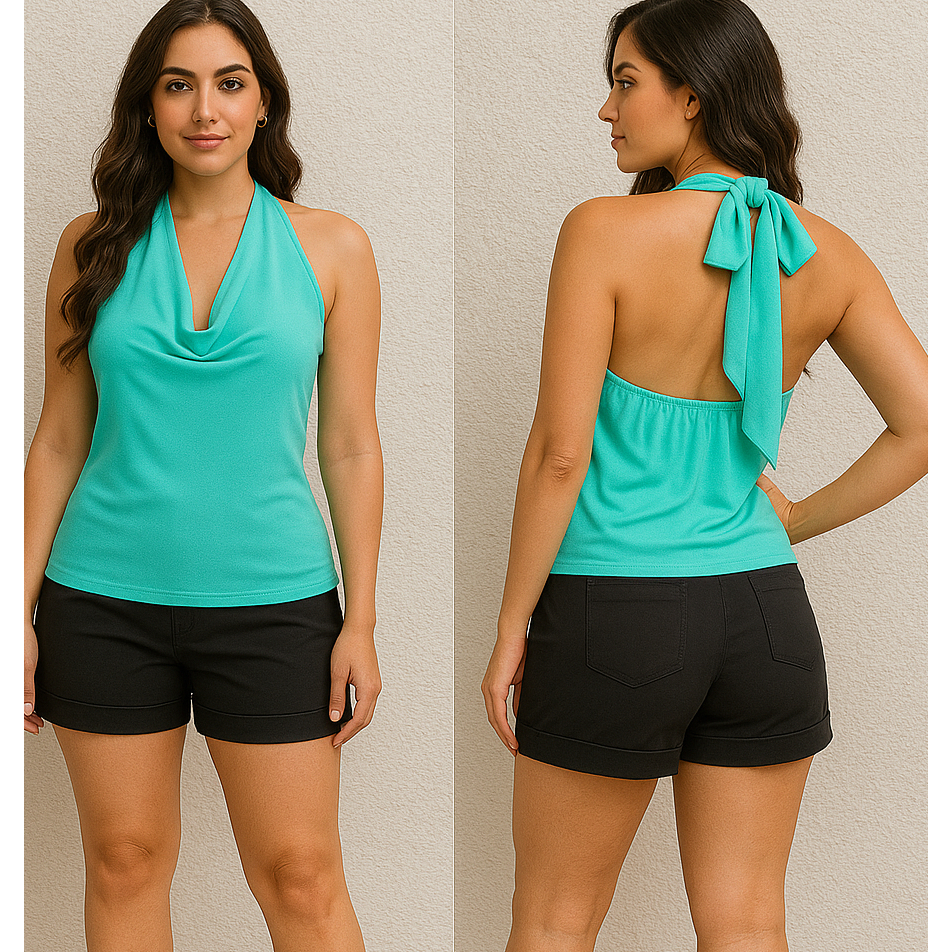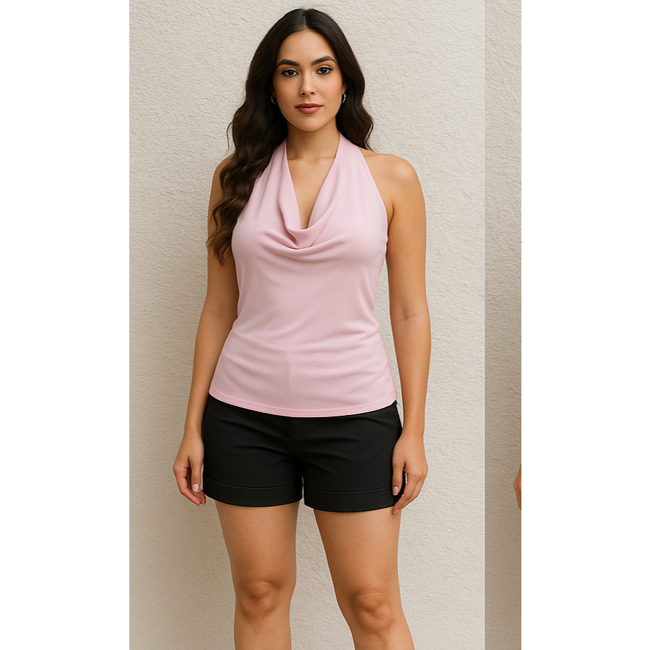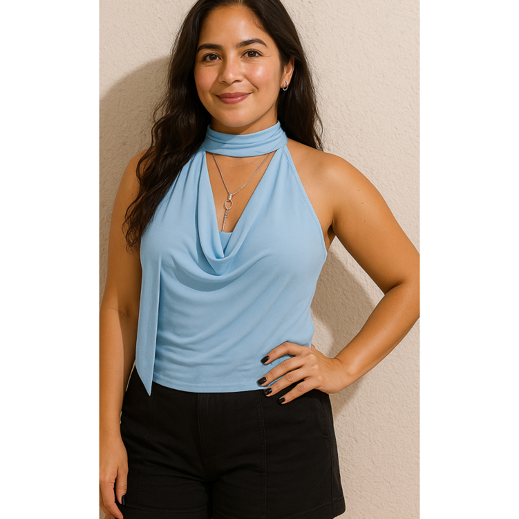 Blusa Feminina Decote Drapeado Com Costas Abertas